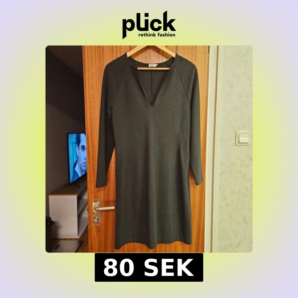 Säljer en stilren mörkgrå klänning från Filippa K. Klänningen har en v-ringad design och långa ärmar, perfekt för en elegant look. Materialet är mjukt och bekvämt, vilket gör den idealisk för både vardag och speciella tillfällen.