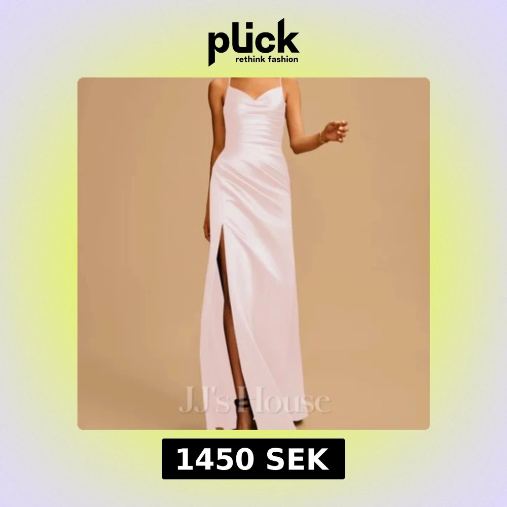ljusrosa balklänning i satäng med smala axelband och öppen rygg. Klänningen har en slits framtill och korsade band i ryggen. Aldrig använd endast testat( lappar kvar) säljer då jag inte tyckte om den på mig. Lite smink fläck ifrån testning, men det syns knappt och det är på insidan av klänningen