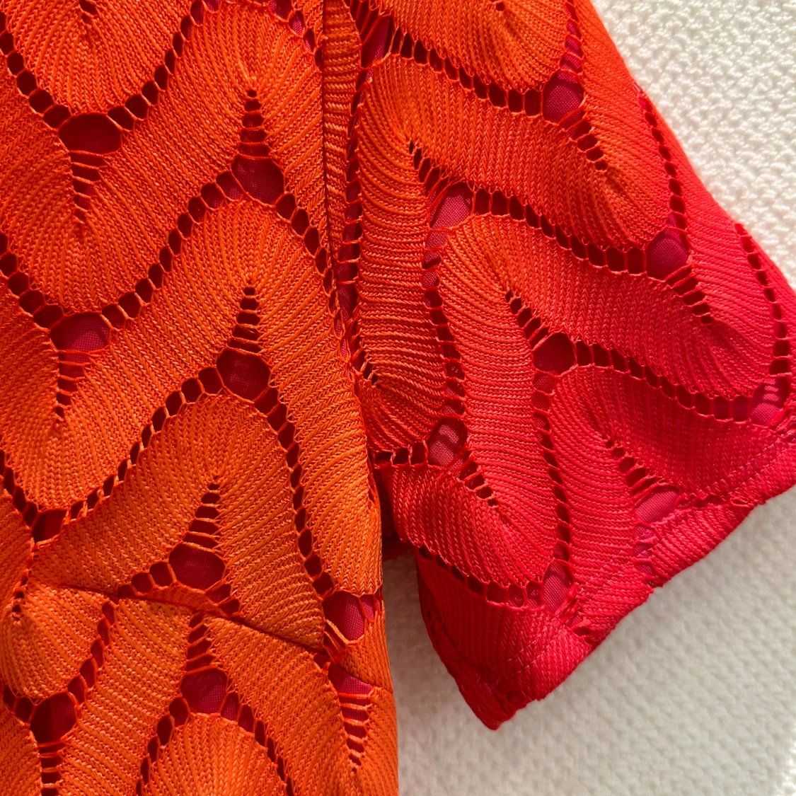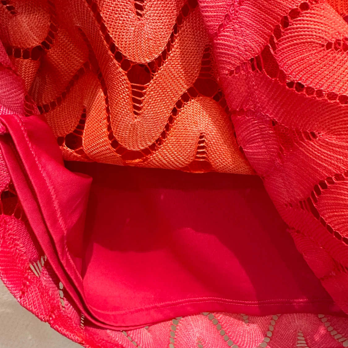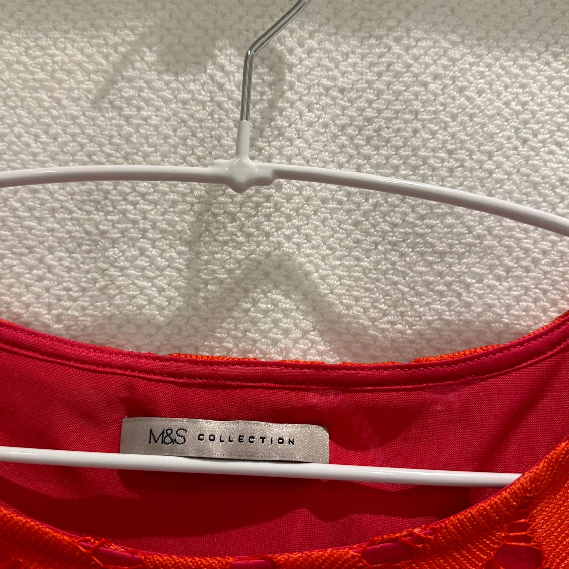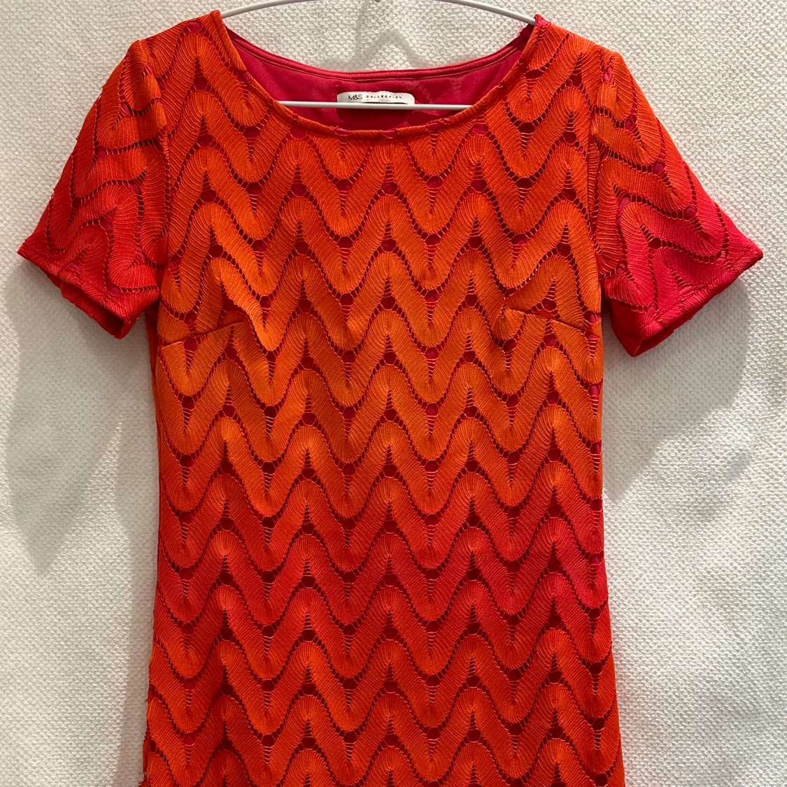 Fin klänning i lite ovanlig färg. Orange som skiftar till rosa. 2 lager. Från M&S.