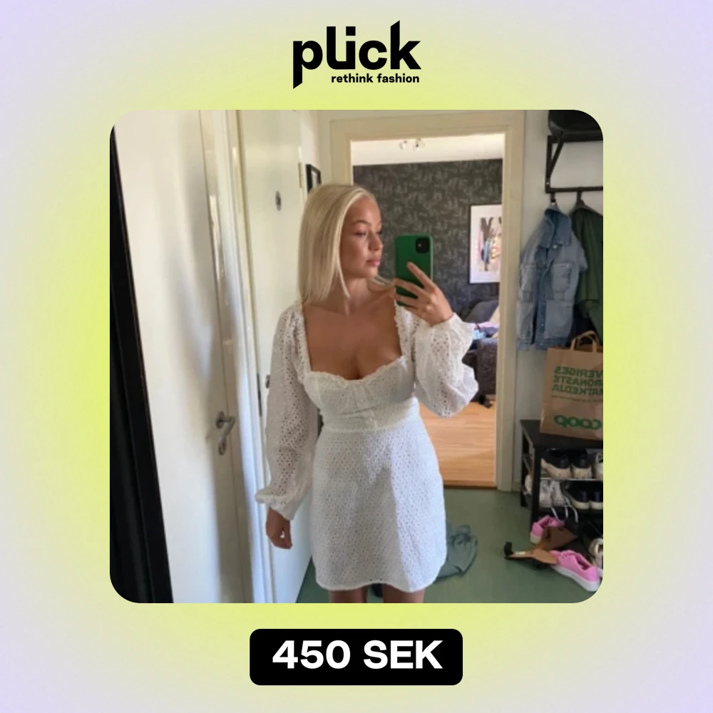 Superfin vit klänning med Blomm mönster! Köpt från boohoo, använd 1 gång på kvällen på studenten. Utan fläckar!