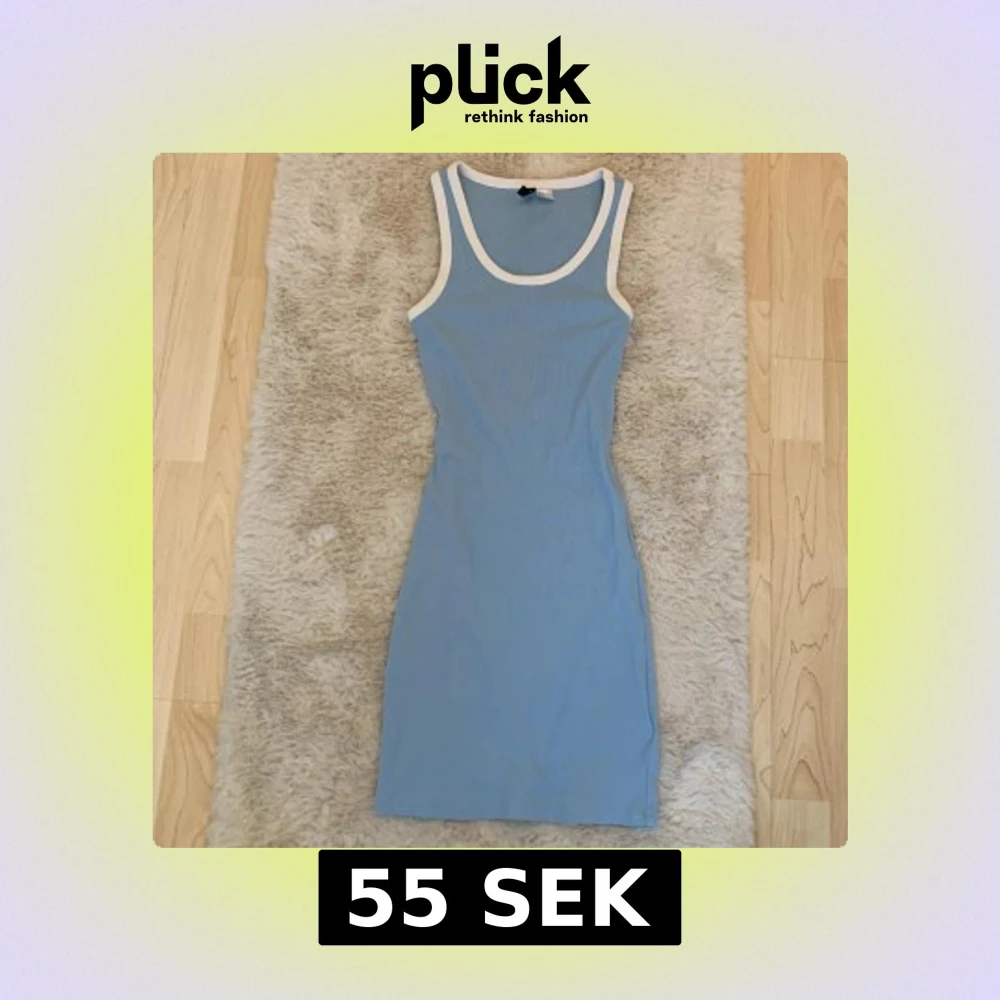 Snygg blå ärmlös klänning från Divided med vita kanter. Klänningen är ribbad och har en tight passform som framhäver figuren. Perfekt för sommaren!🌺 Nästan aldrig använd