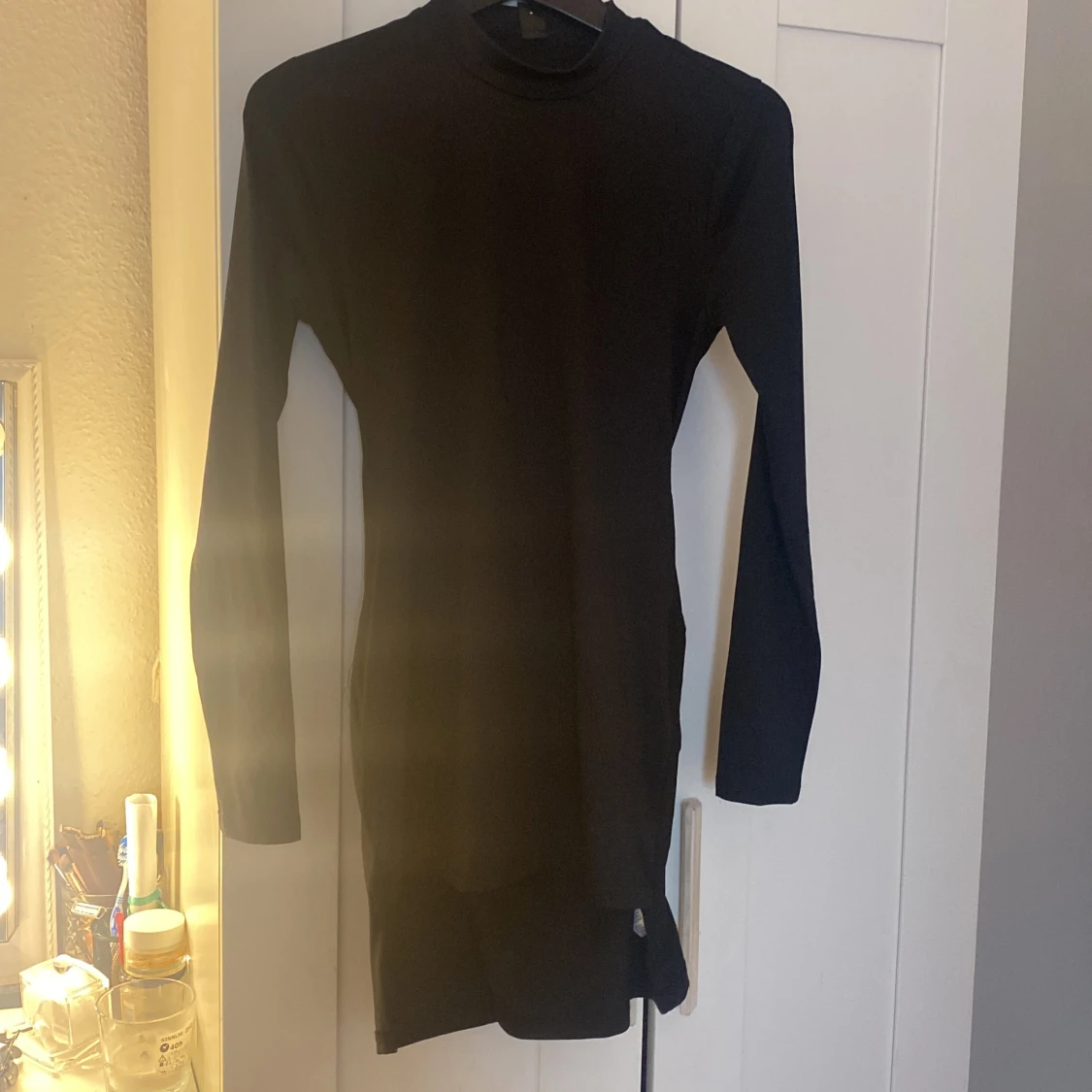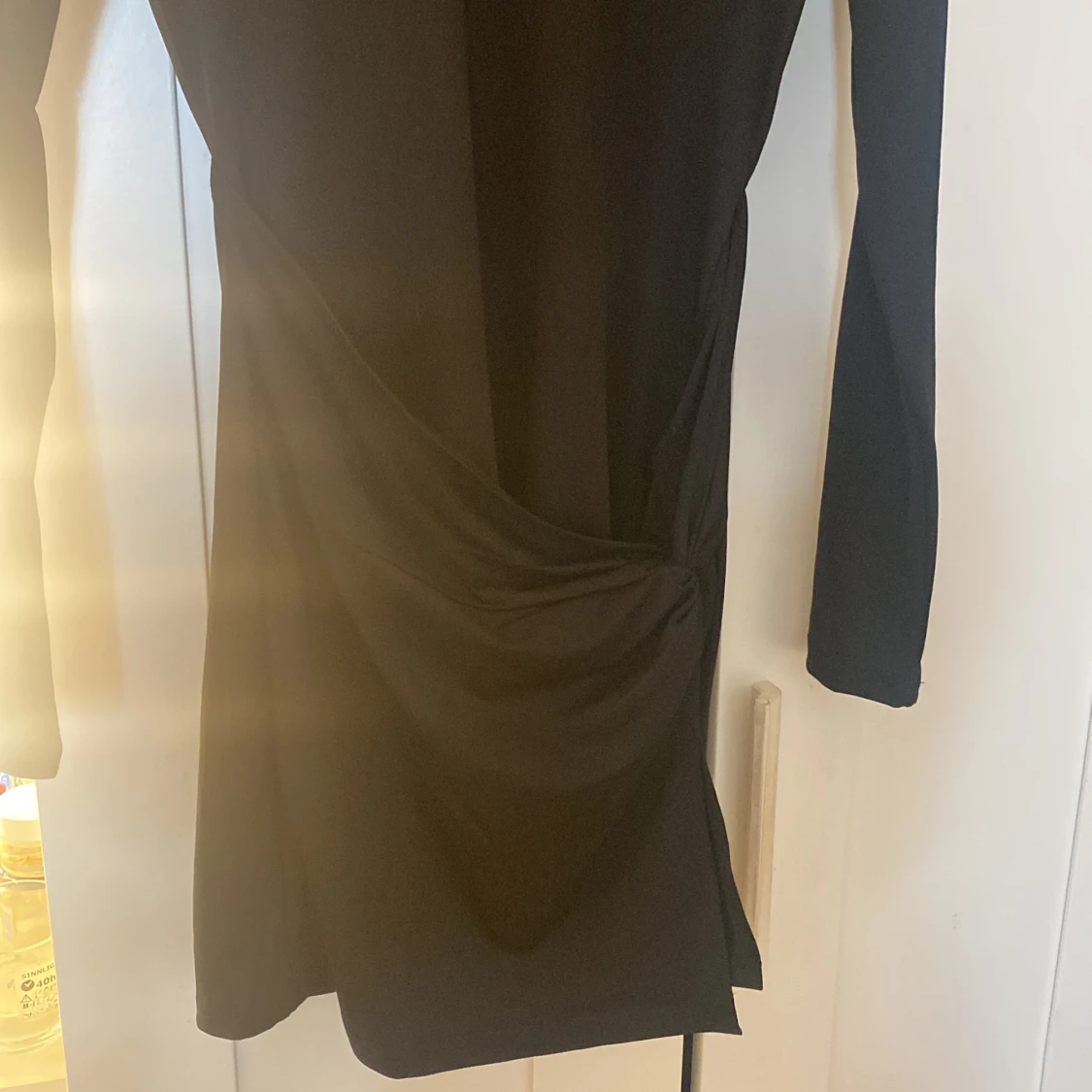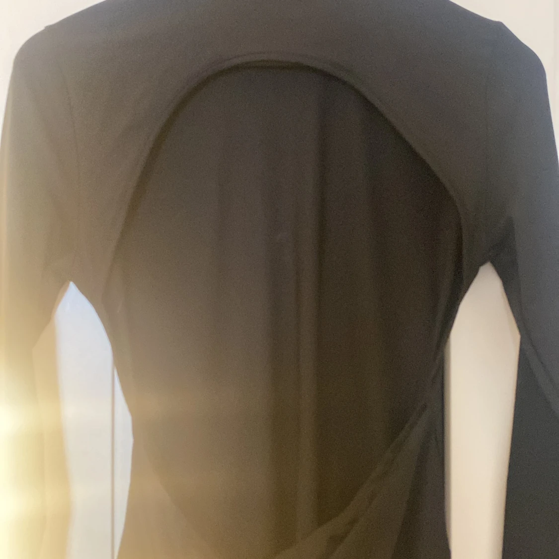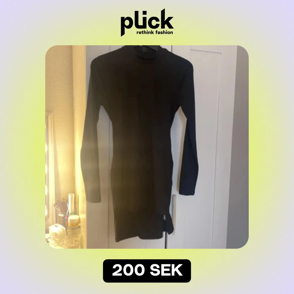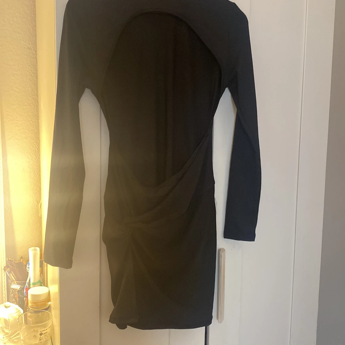 Jätte fin svart klänning skit snygg sitter jätte snyggt är öppen där bak i ryggen jätte snyggt och en rosett där framme av klänning 💕💕