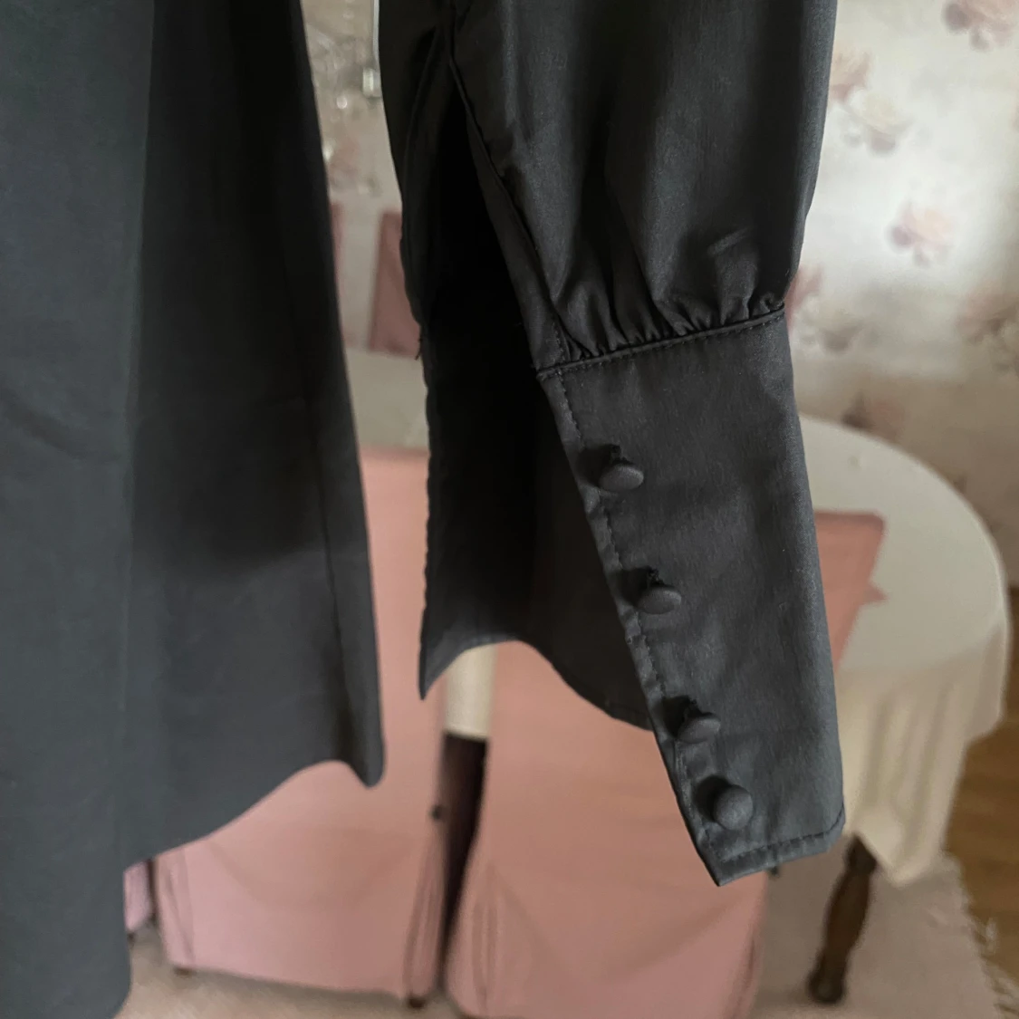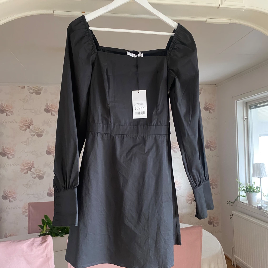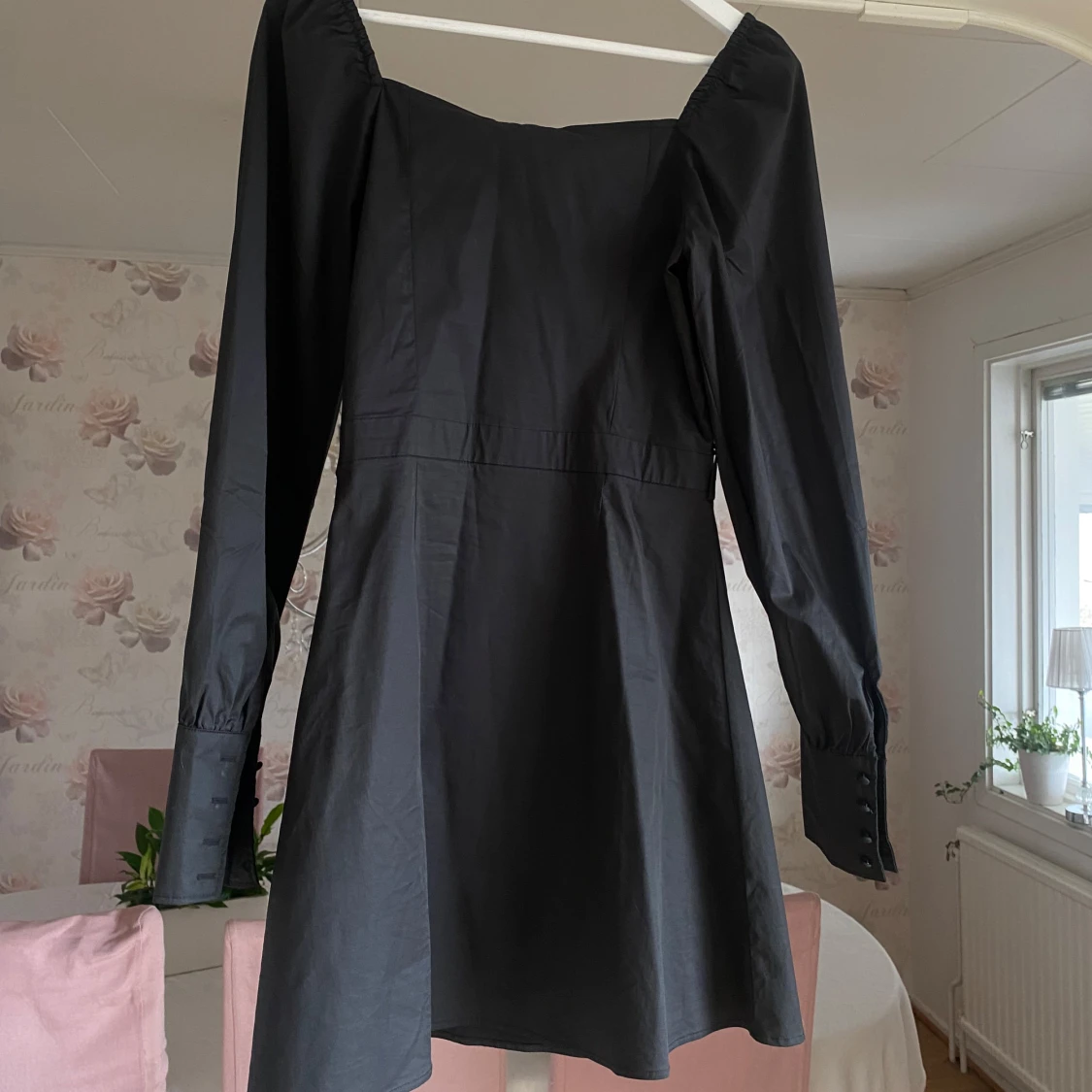 Elegant svart klänning från NA-KD med långa ärmar och fyrkantig urringning. Klänningen har knappar vid ärmsluten och en smickrande passform som passar perfekt för olika tillfällen.