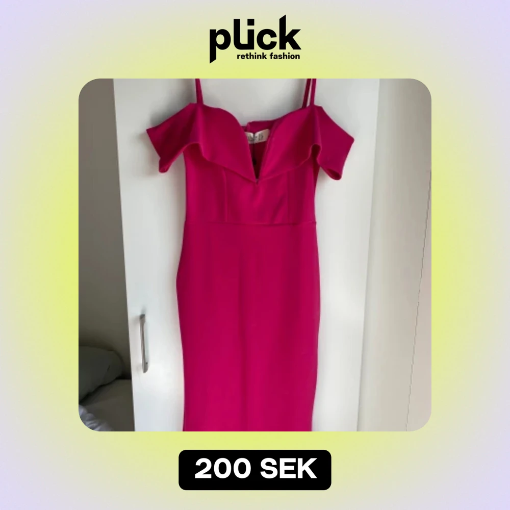 Rosa finklänning med axelband + volang på armen. Jättefin!! Ny med prislapp kvar. Säljer då den tyvärr är för liten för mig.