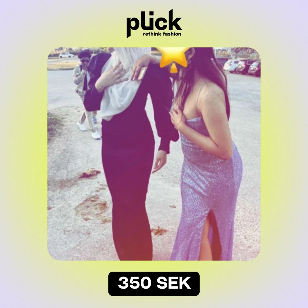 säljer denna balklänning åt min kompis! En jätte fin glittrig balklänning med en slits och knytning där bak. Satt bra på henne med klackar och hon är 168💕använd en gång