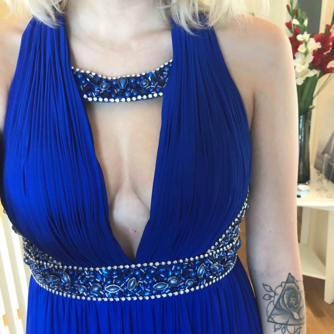 Pris kan diskuteras! Inköpt till 9ans bal 2016 använd en gång, därför väldigt unik då den inte går att få tag i längre. Passar även en 36 i storlek. Tror den kostade runt 2500kr. Svarar gärna om du har några frågor.