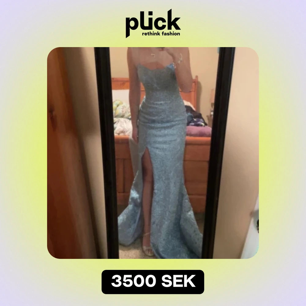 Balklänning i bra skick, använd 2 gånger! klänningen: slit spets blå/skyblue öppen rygg (korsat där bak) släp (med krok för att hänga upp) inbyggd bh (B-D kupa) size 0-2 motsvarar en xs-s passar någon som är 165-175 köpt för $698 (7500kr)💕 Pruta!
