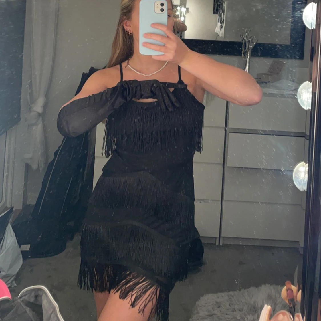 Svart fransklänning strl S från Boohoo. Endast använd vid ett tillfälle. Perfekt festklänning🥂