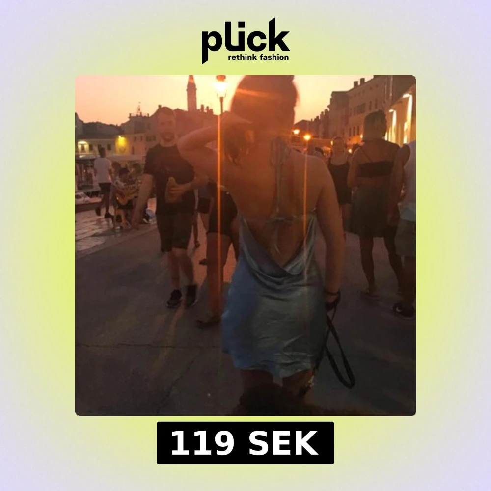 Snygg ljusblå klänning med öppen rygg, knappt använd, fler bilder finns💘