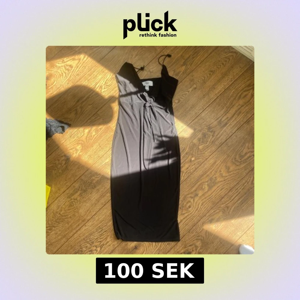 Säljer en svart långklänning med smala axelband och snygg knytning framtill. Klänningen har en elegant v-ringning och är figurnära i modellen. Perfekt för dig som gillar stilrena och klassiska plagg.