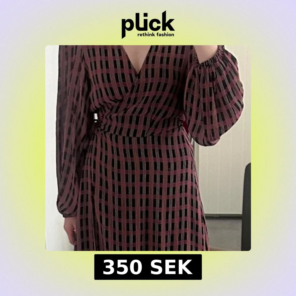 Snygg rutig omlottklänning i svart och rosa med långa ärmar och v-ringad hals. Perfekt för en stilfull look med sitt unika mönster och bekväma passform. Står ingen storlek men passar mig som är s och min mamma som är m