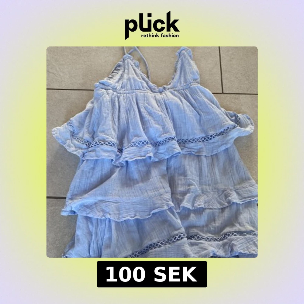 Supersöt ljusblå kortklänning från Gina Tricot med tunna axelband och volanger. Klänningen har broderade detaljer i midjan och längs volangerna, samt en omlottkänsla upptill. Perfekt för sommarens alla tillfällen!