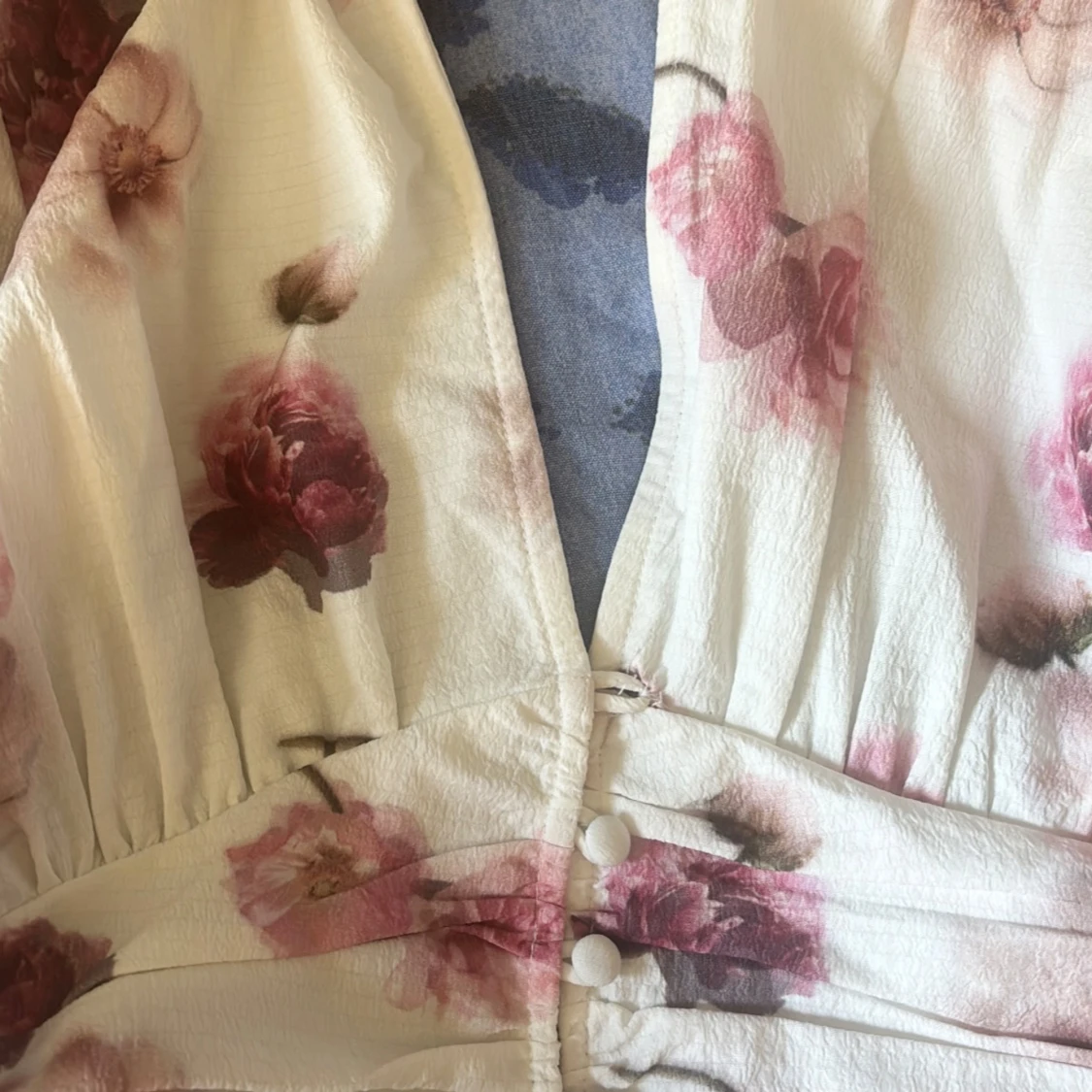 Säljer denna virala klänning från gina tricot i storlek 34, aldrig använd bara testad, lappen kvar. Första knappen högst upp har lostnat vid frakt, så har fixat det på ett sätt(se bild 3) klänningen är normal i storlek, tyvärr för liten för mig som är en 36a. Säljes för 800 då jag köpte den dyrt i andrahand.