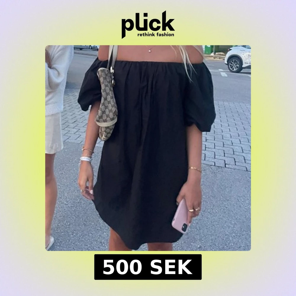 Supersnygg svart offshoulder klänning med puffiga korta ärmar och avslappnad passform. Perfekt för dig som gillar en enkel men trendig look. Klänningen är kort och har en luftig känsla, vilket gör den riktigt skön att bära varma dagar.