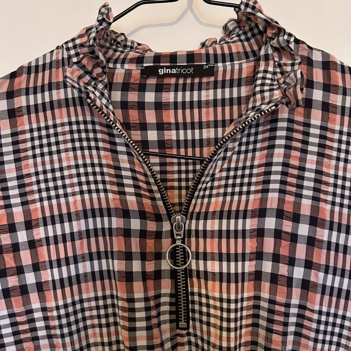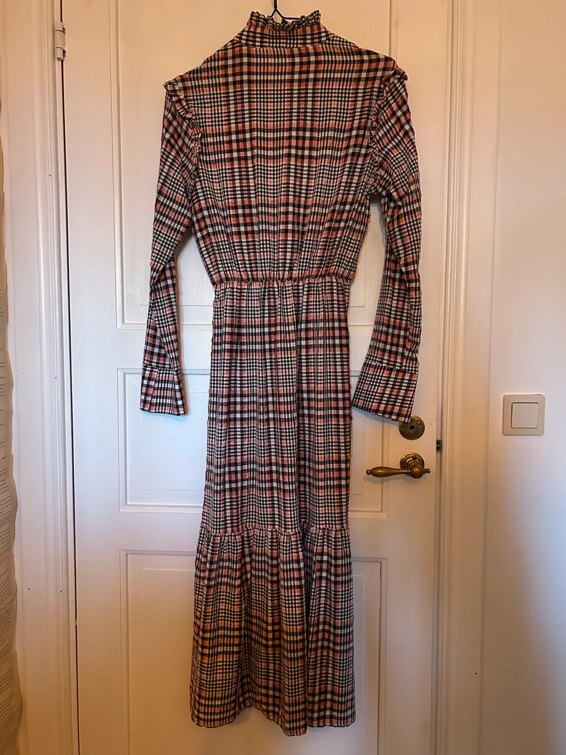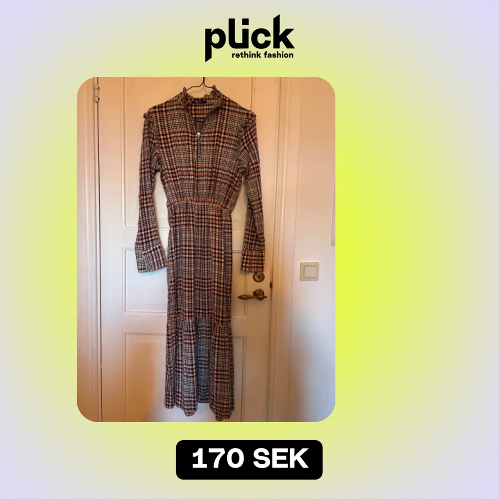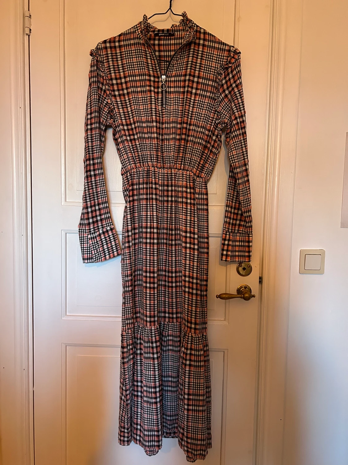 Oanvänd långärmad klänning i rutigt mönster med dragkedja. Storlek 34 från Gina Tricot.