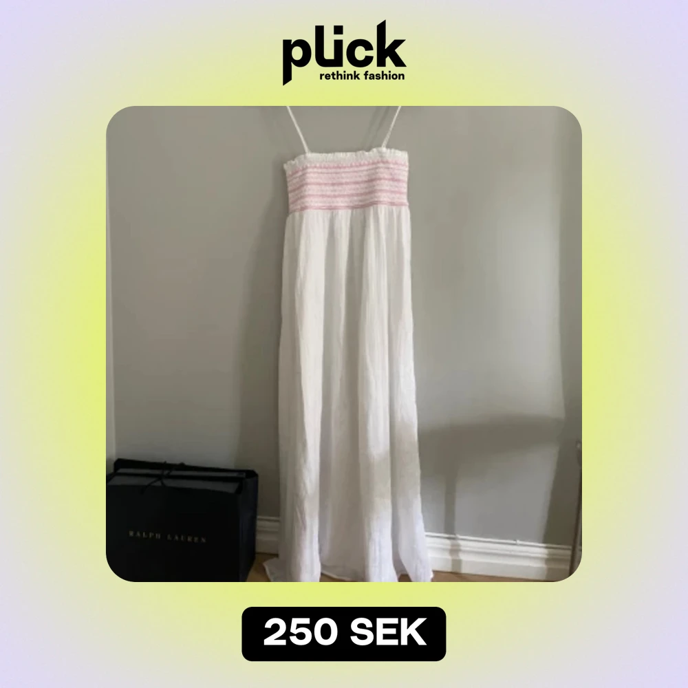 Superfin långklänning med rosa detaljer, ifrån Gina tricot. Axelbanden går att justera, samt tas bort om man vill. Säljs för att den inte kommer till andvänding. Klänningen är i nyskick och är andvänd 1 gång.🫶🏼🤍