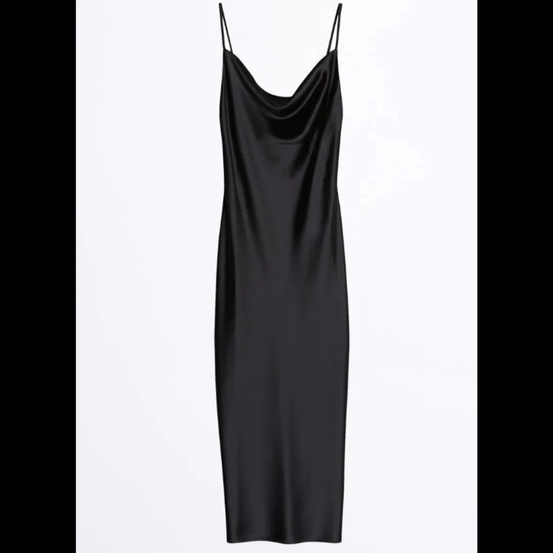 Oanvänd klänning från Gina tricot i svart silke🖤 jättefin passform