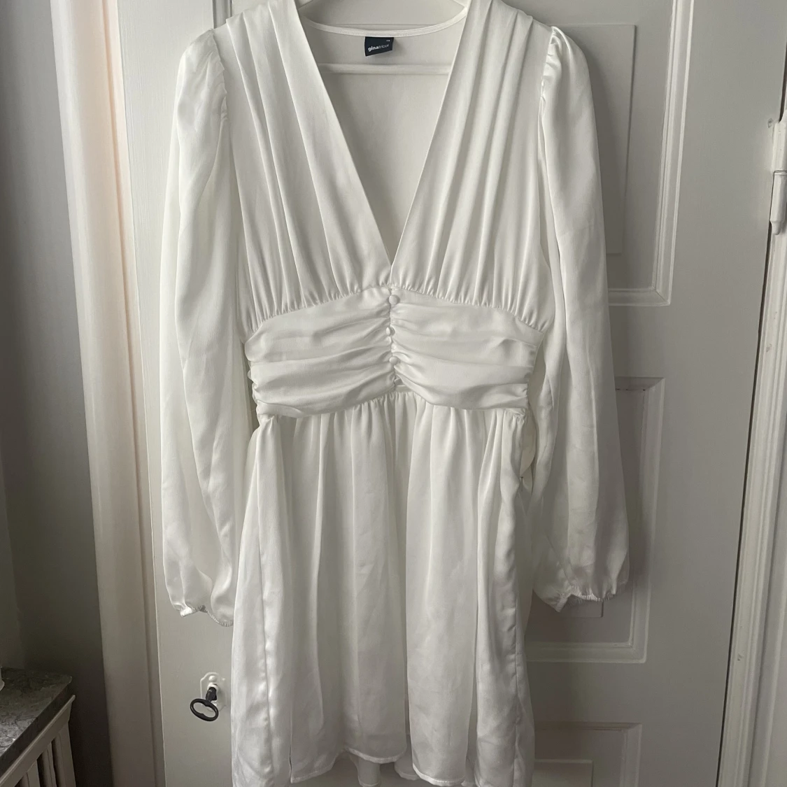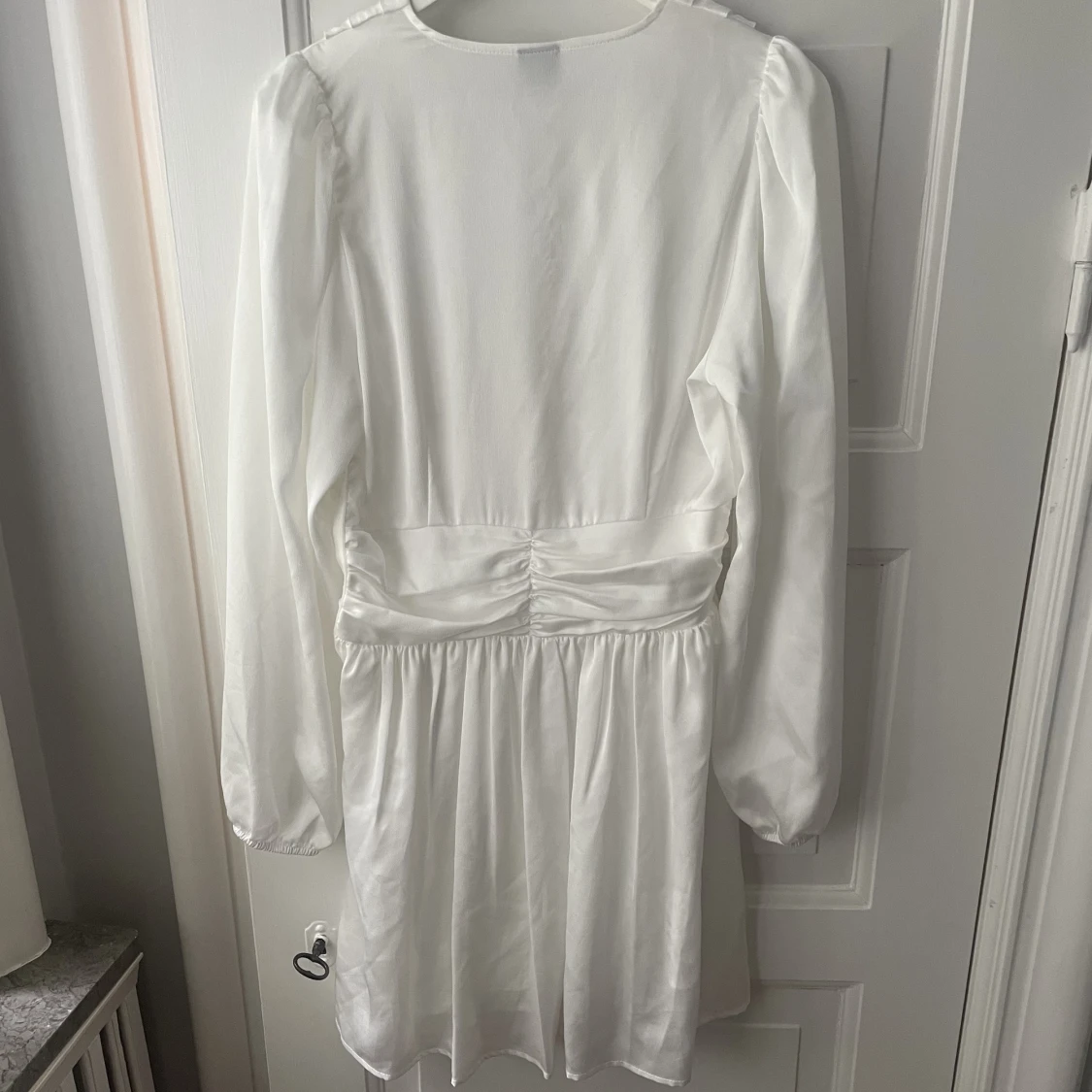 Superfin vit klänning från Gina i satinliknande material. Använd 2 gånger. Storlek 38💕 Frakt betalas av köparen