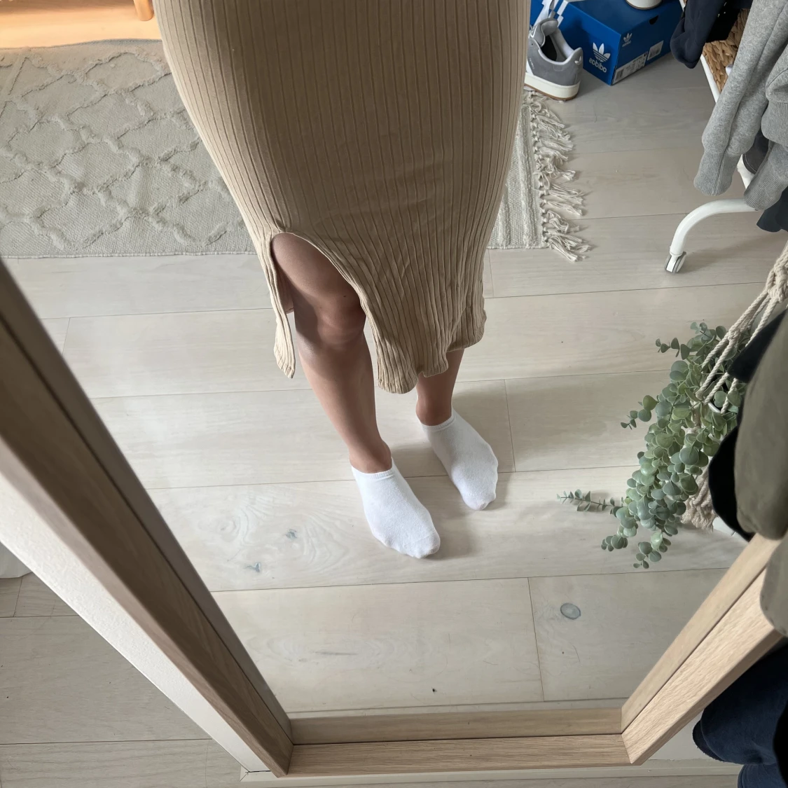 Beige klänning med slits från Gina Tricot. I väldigt bra skick. Storlek xs (men lite mindre).