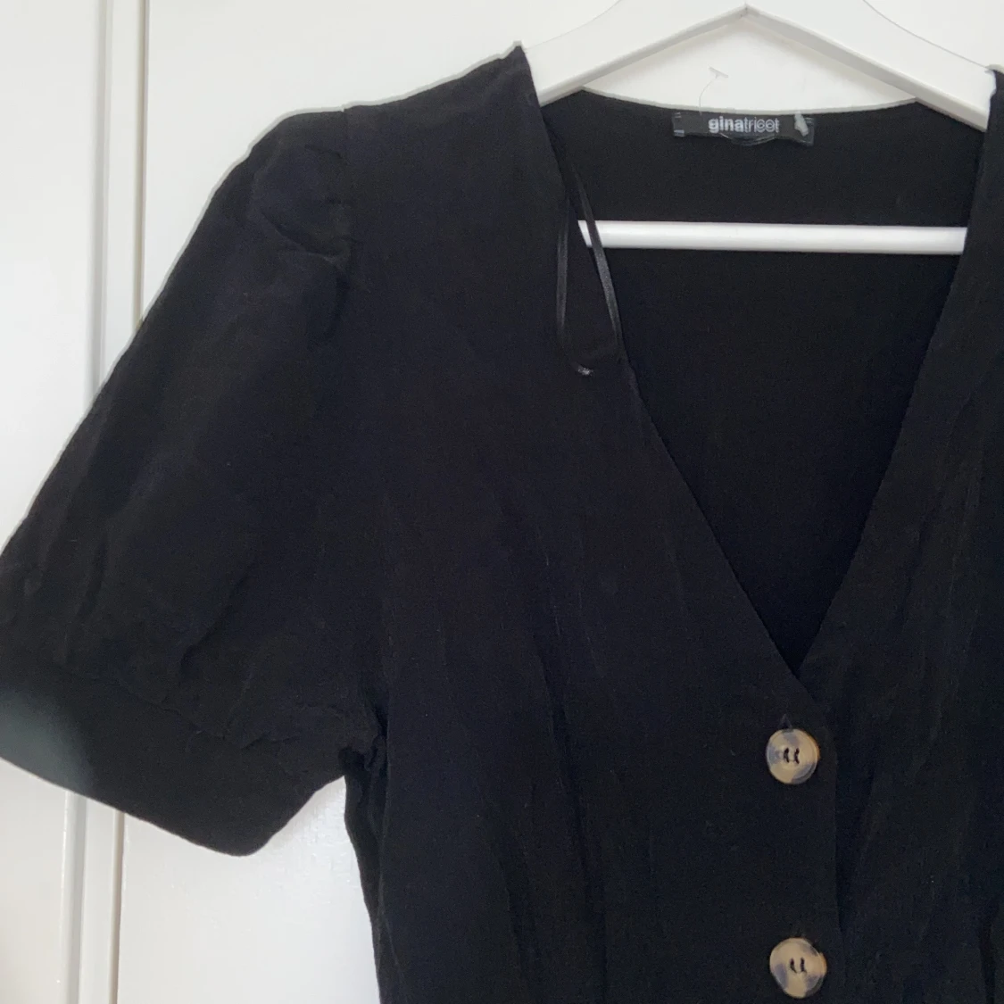Klänning från Gina med fina bruna knappar i storlek 38 men är liten i storleken och är mer som en 34-36, knappt använd!