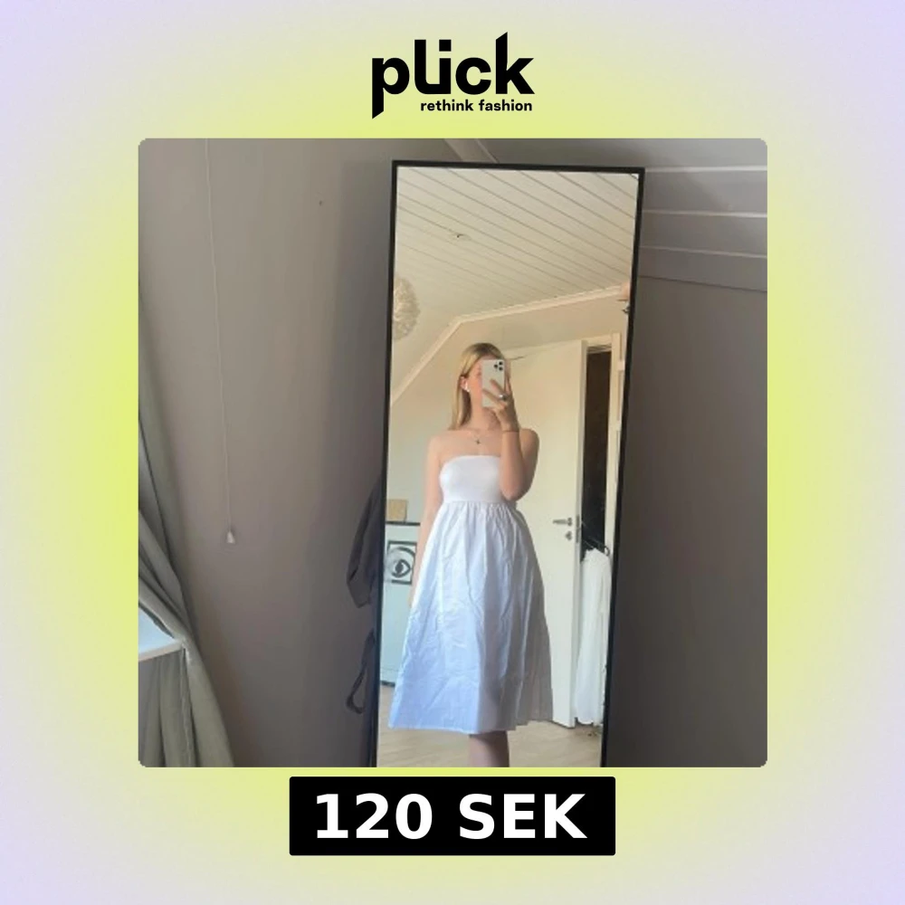 Säljer en söt vit axelbandslös klänning från Gina tricot. Aldrig använt endast provad!💕super fin till studenten