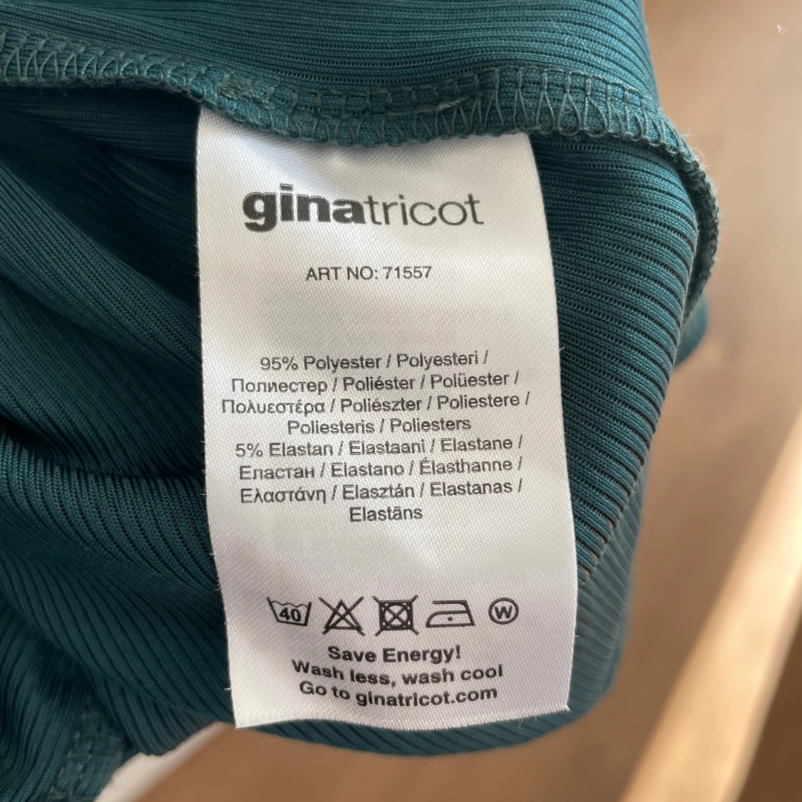 Snygg mörkgrön ribbad klänning från Gina Tricot med lång ärm och rund hals. Modellen är kroppsnära och tillverkad i stretchigt material med 95% polyester och 5% elastan. Perfekt för dig som gillar enkel och stilren design.