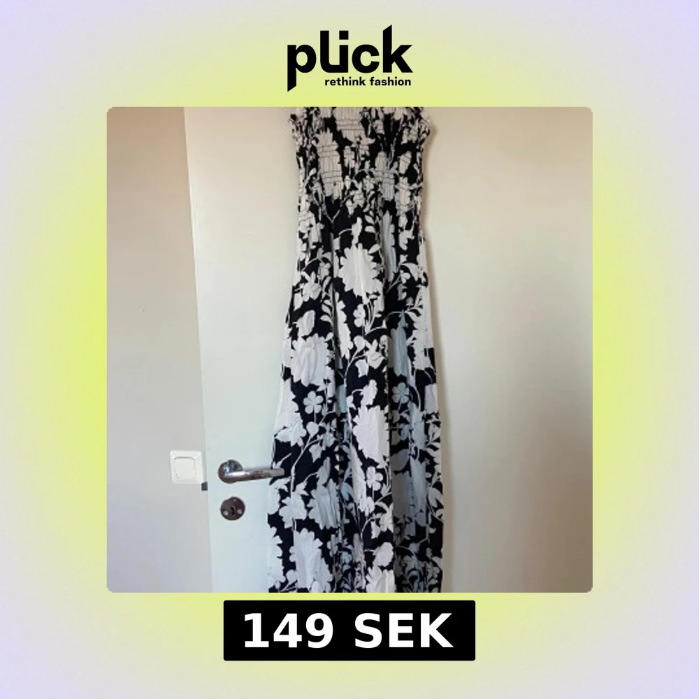Supersnygg långklänning från Gina Tricot i svartvitt blommigt mönster. Klänningen har smock upptill, knappar vid axelbanden och är ärmlös. Perfekt för sommarens alla tillfällen och ger en riktigt fräsch vibe.