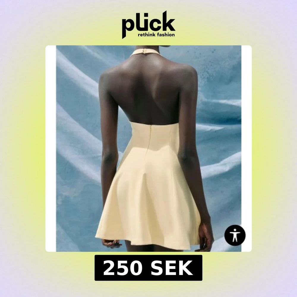 Supersöt ljusgul klänning med halterneck och öppen rygg. Modellen är kort med utsvängd kjol och har en clean, modern look. Perfekt för sommarens alla tillfällen. Klänningen stängs med dragkedja bak och har en figurnära passform upptill. I stl s och bara använd en gång💕