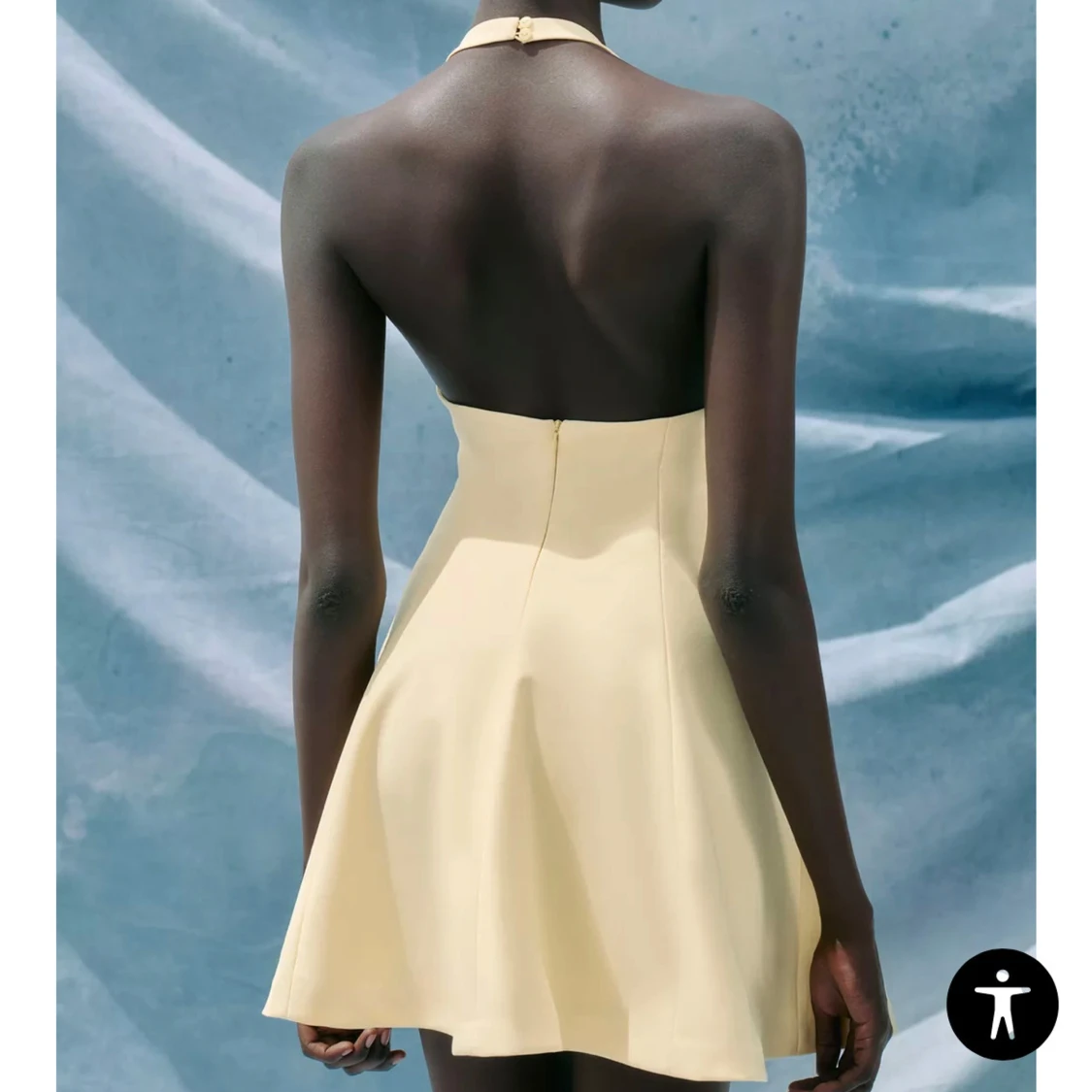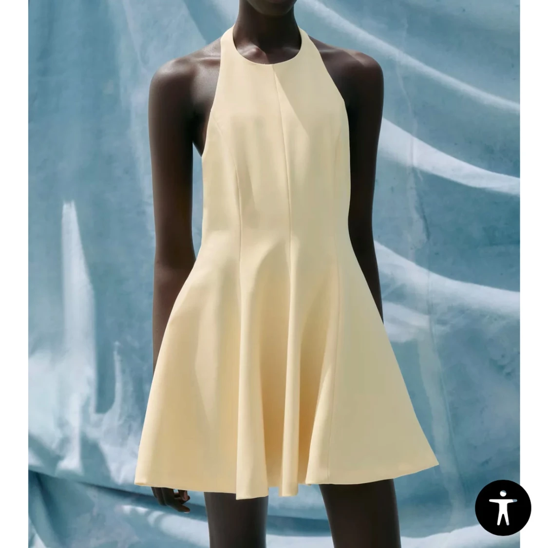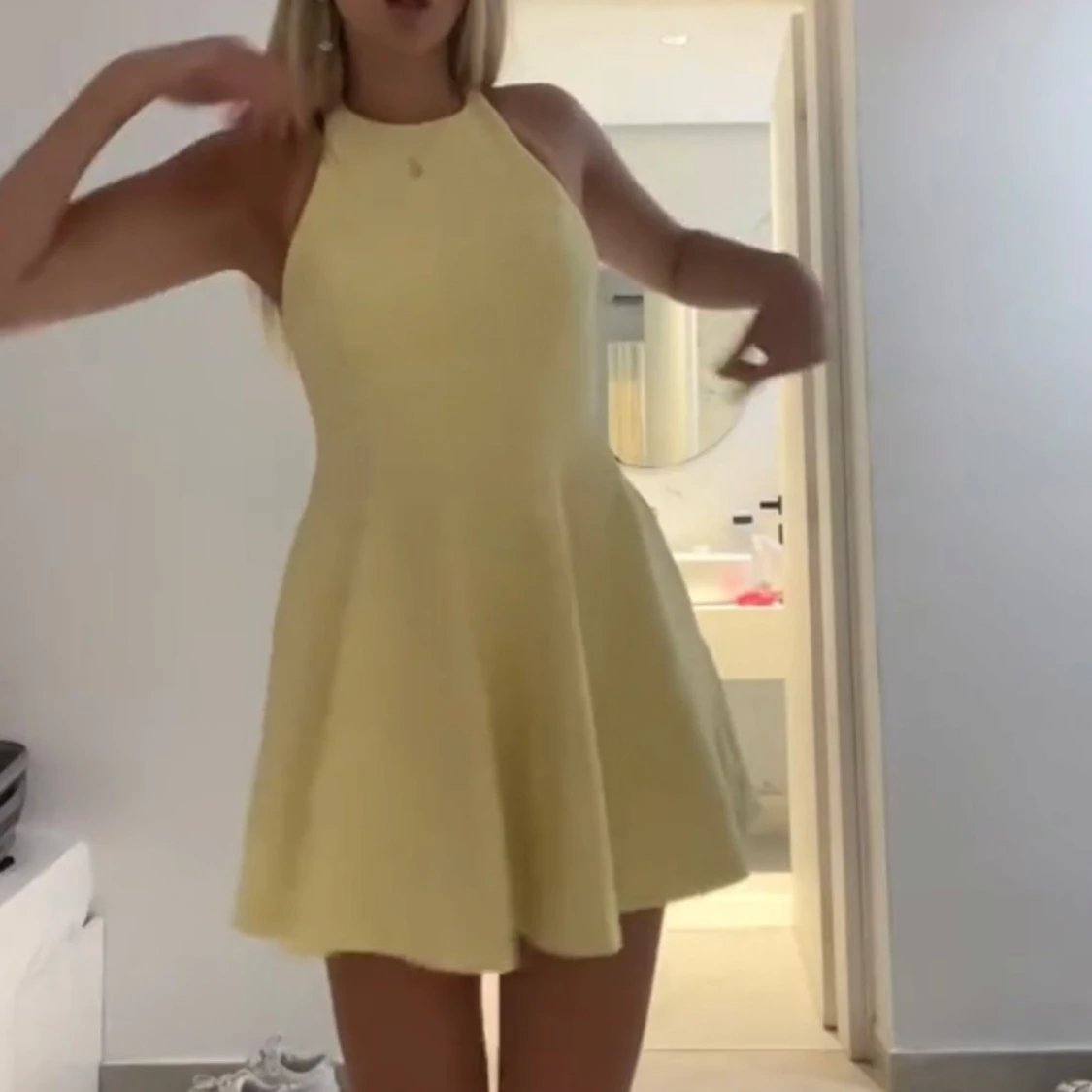 Ljusgul kort klänning med halterneck