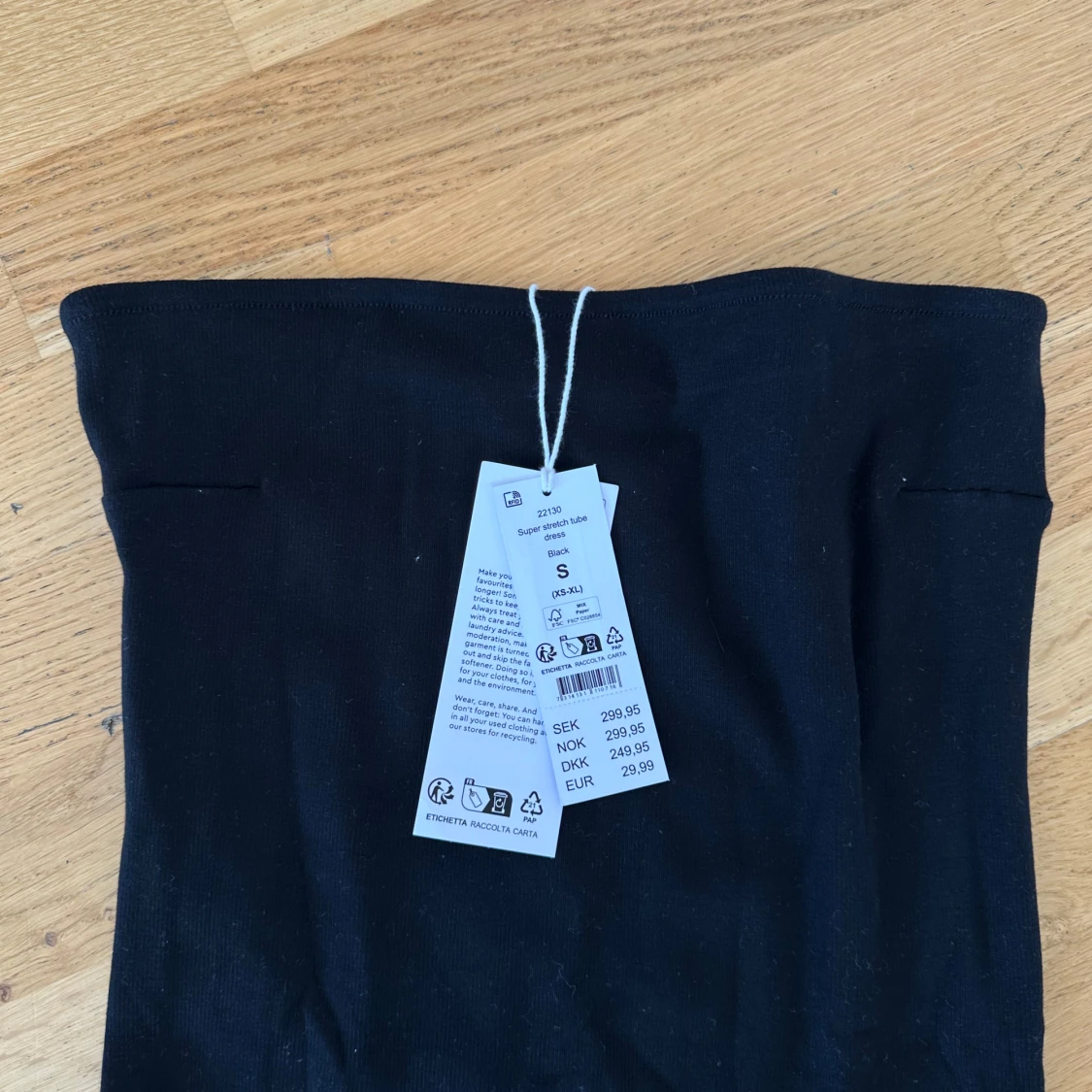 Säljer en svart, lång tubklänning från Gina Tricot i storlek S. Klänningen är ärmlös och har en slim passform som sitter snyggt mot kroppen. Materialet är mjuk bomull med lite stretch för extra komfort. Perfekt för dig som gillar minimalistisk och stilren look.