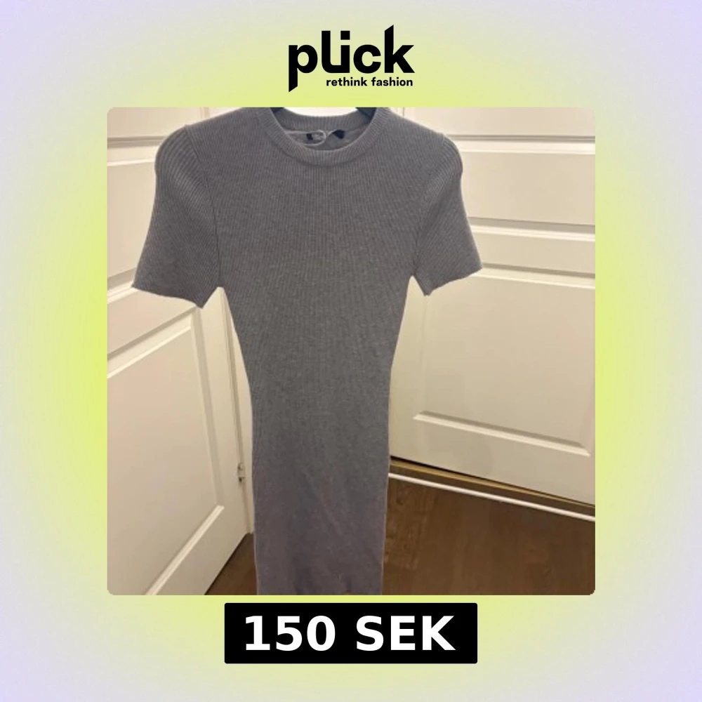 Säljer en enkel och stilren grå ribbad klänning med korta ärmar och rund hals. Klänningen har en tight passform. Köpt precis och aldrig använt.