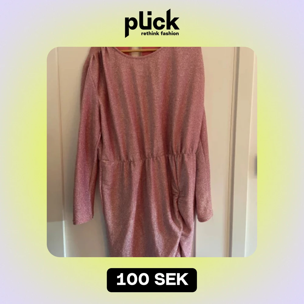 Väldigt söt klänning i rosa glitter med öppen rygg, nästan aldrig använd! Storlek XL men sitter som en L från BikBok