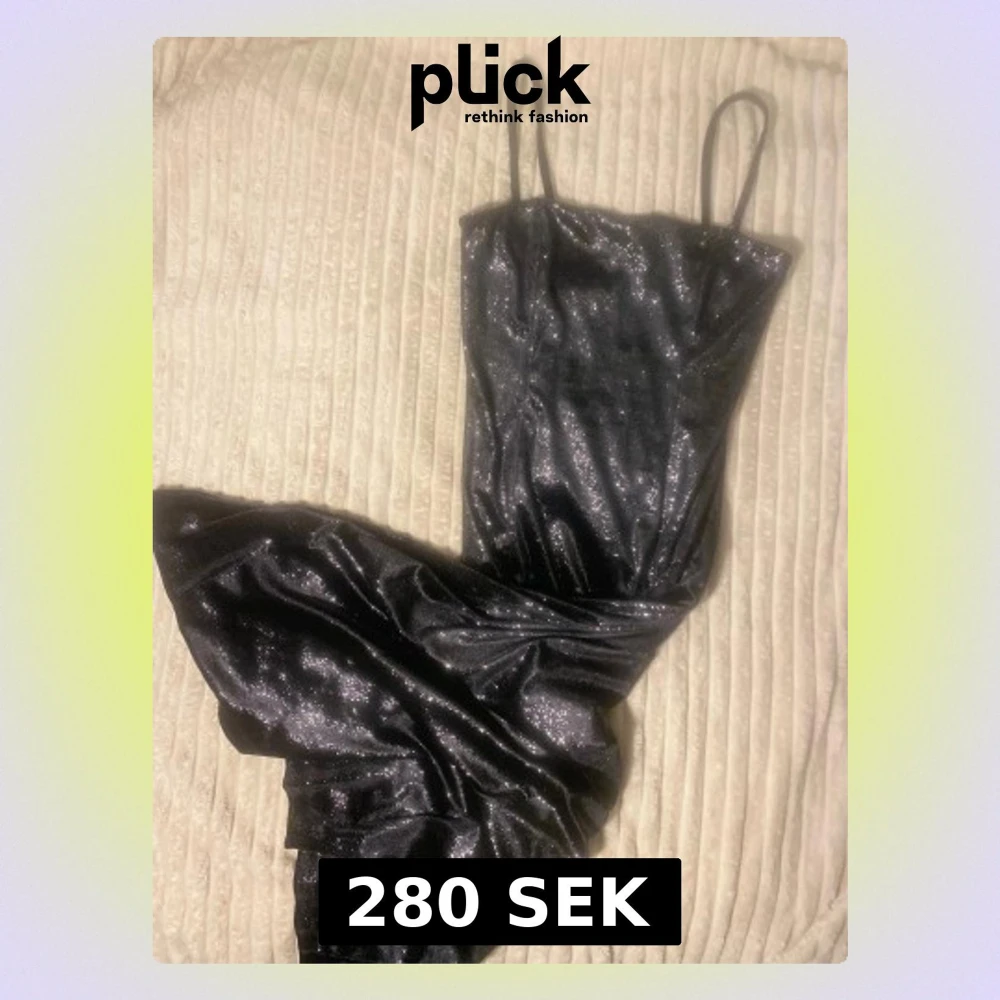 Svart skimrande lång klänning i färgen svart. Har en liten slits på vänster sida. Mjuk material och väldigt skims i passformen. Sitter som S/Medium size. Använt 1 gång , denna klänning gör vem som helst avundsjuk över dig! Den är en hand under mina knän och jag är 167cm