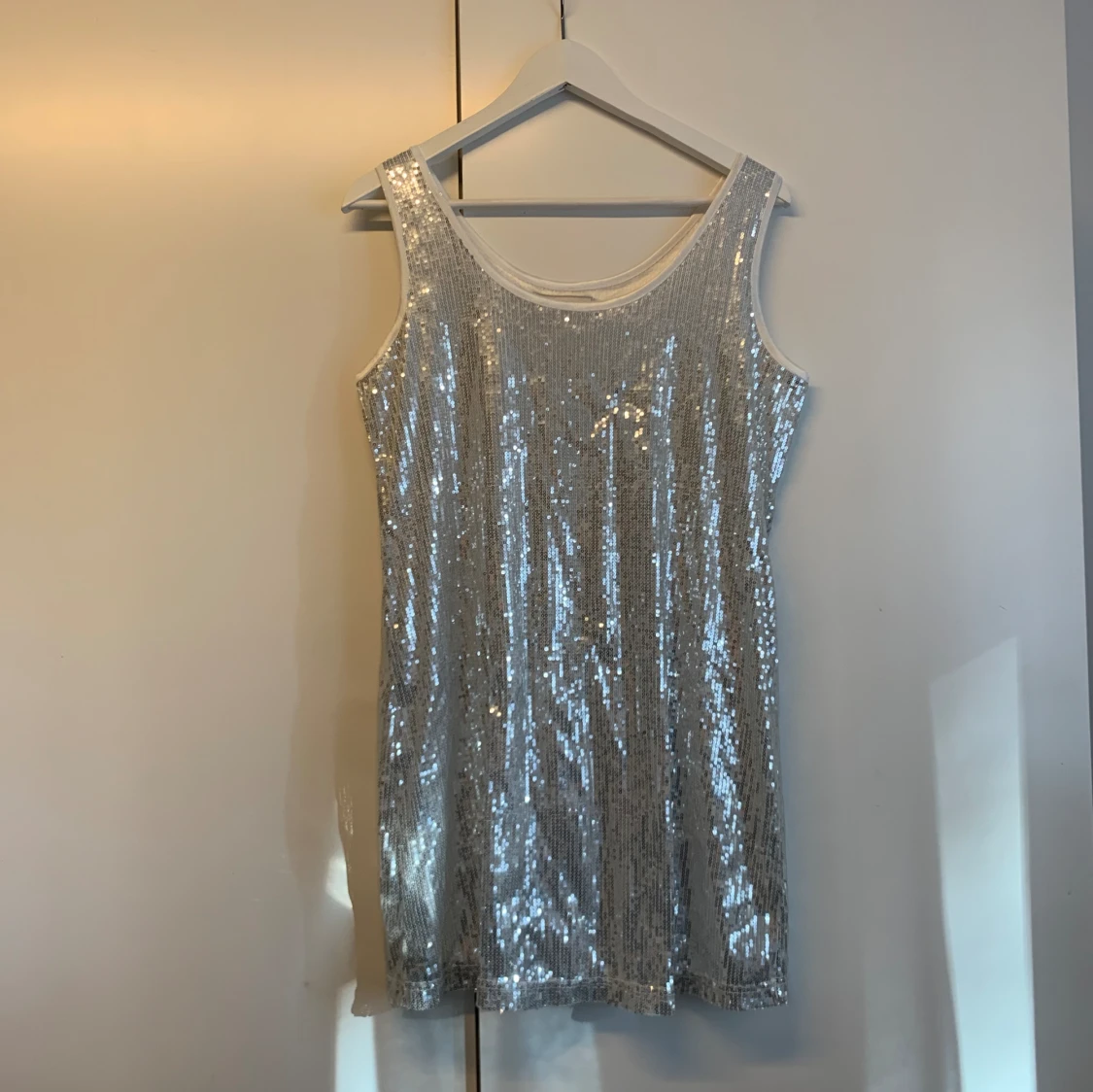 Säljer dessa två festklänningar, storlek M. Den svarta är från H&M, strlk 40. Den silvriga är från okänt märke i strlk 42 men den är lite i storleken. Skriv för fler bilder🖤