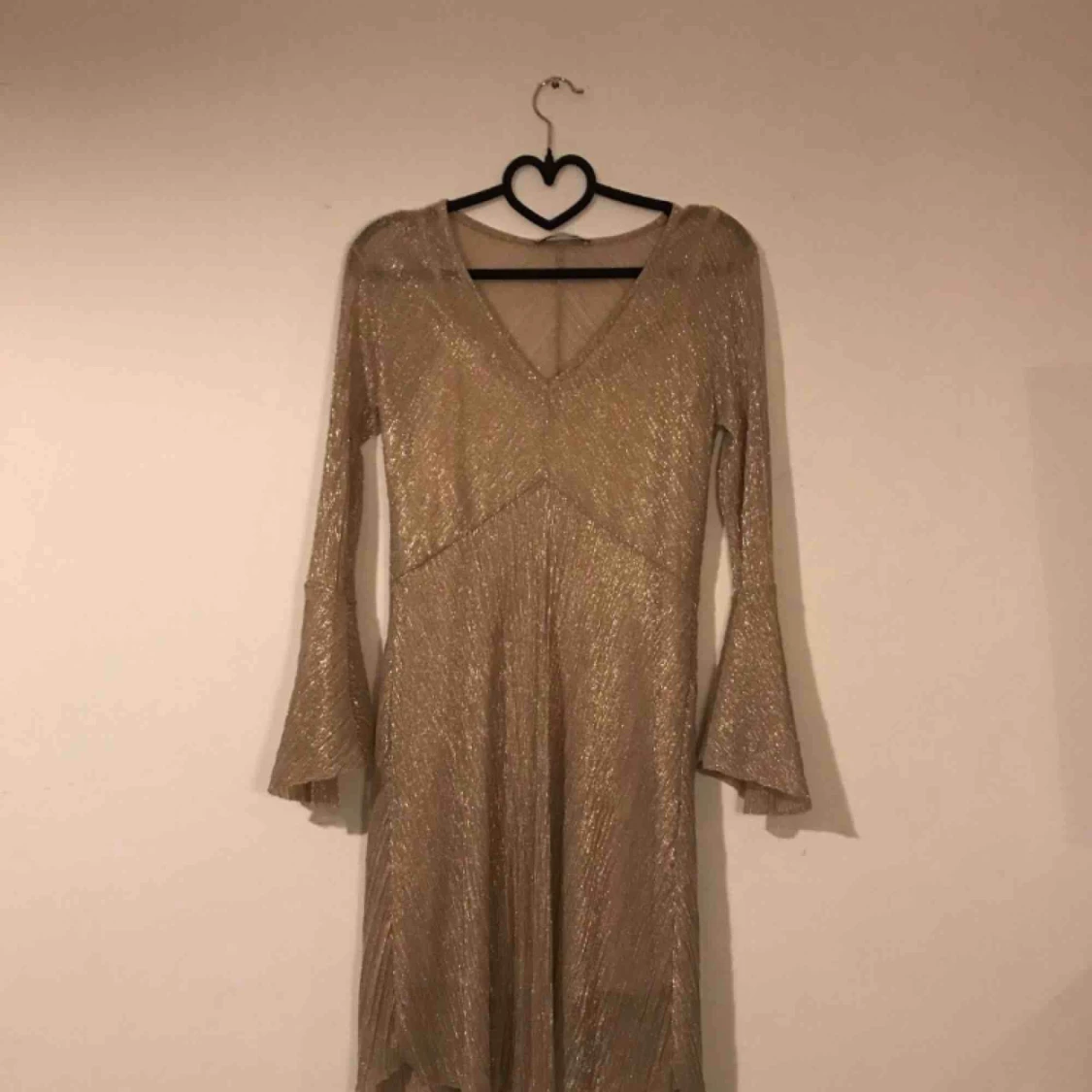 Somrig guld-glittrig klänning med underklänning Skick: Oanvänd, köpt second hand. Fraktkostnad tillkommer