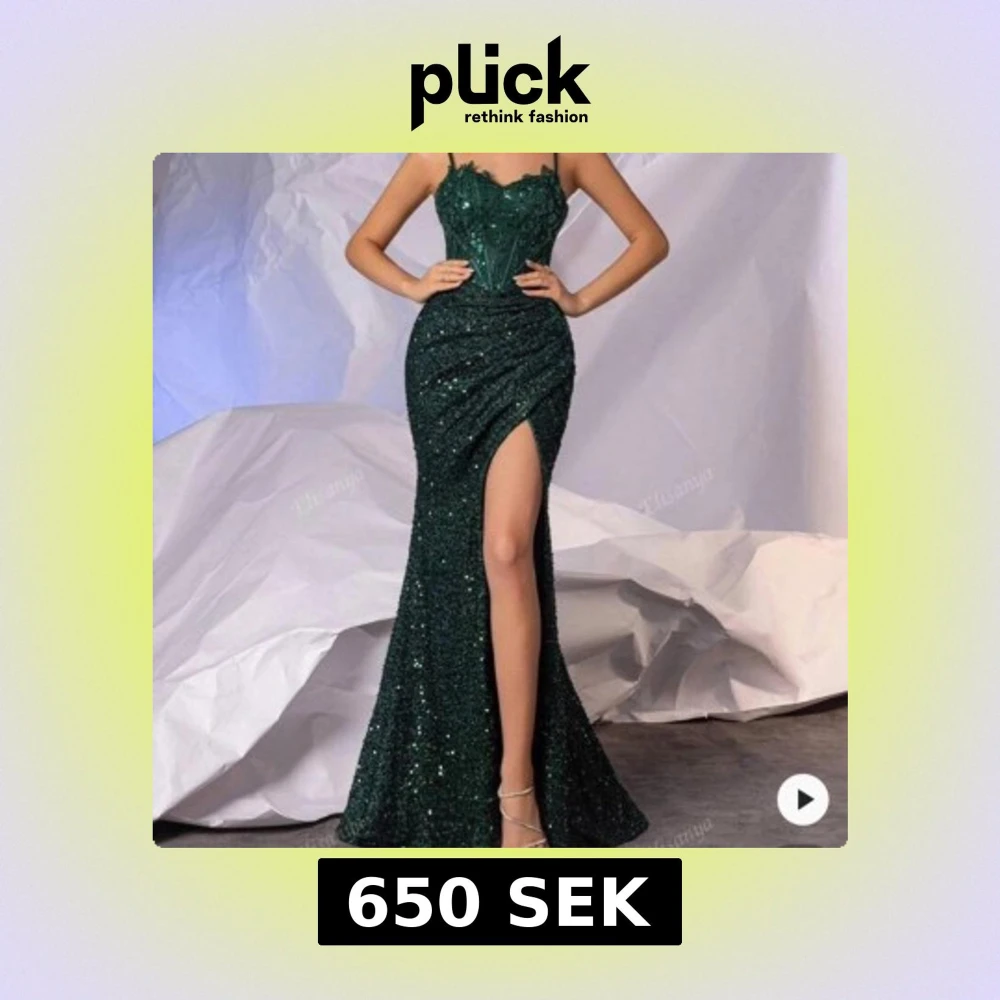 Magisk långklänning i glittrande mörkgrönt tyg med smala axelband och markerad midja. Klänningen har en hög slits framtill och figurnära passform som ger en riktigt snygg siluett. Perfekt för dig som vill sticka ut på bal eller fest! Aldrig använd bara testad. Köpt för 950💕
