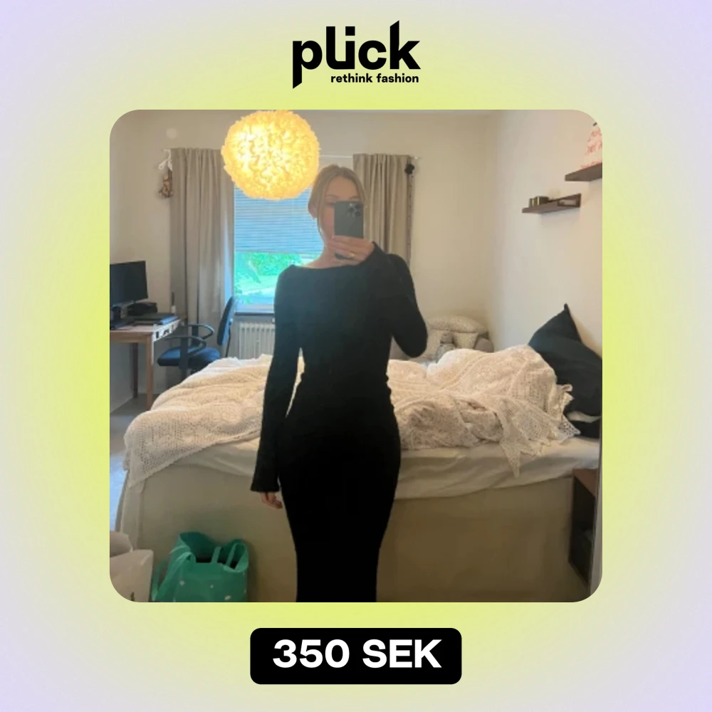 Säljer en svart glittrig klänning med öppen rygg, använd en gång☀️