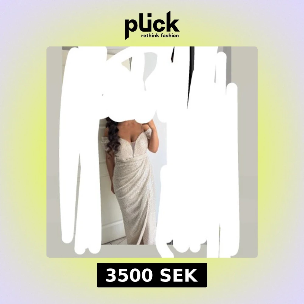 Superfin långklänning från Sasha i champagnefärgat tyg med massor av paljetter. Djup v-ringning, offshoulder-ärmar och markerad midja. Klänningen har en snygg drapering framtill och är perfekt för bal eller fest. Riktigt glam känsla! Nypris:6800kr