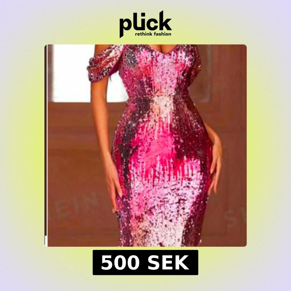 Säljer en fantastisk glittrig långklänning i rosa nyanser. Klänningen har en offshoulder-design med smala axelband och en vacker öppen rygg. Perfekt för en glamorös kväll! Lite släp bak samt formas sig efter kroppen , passar S/M , helt ny och oanvänd , pris disk vid snabb affär
