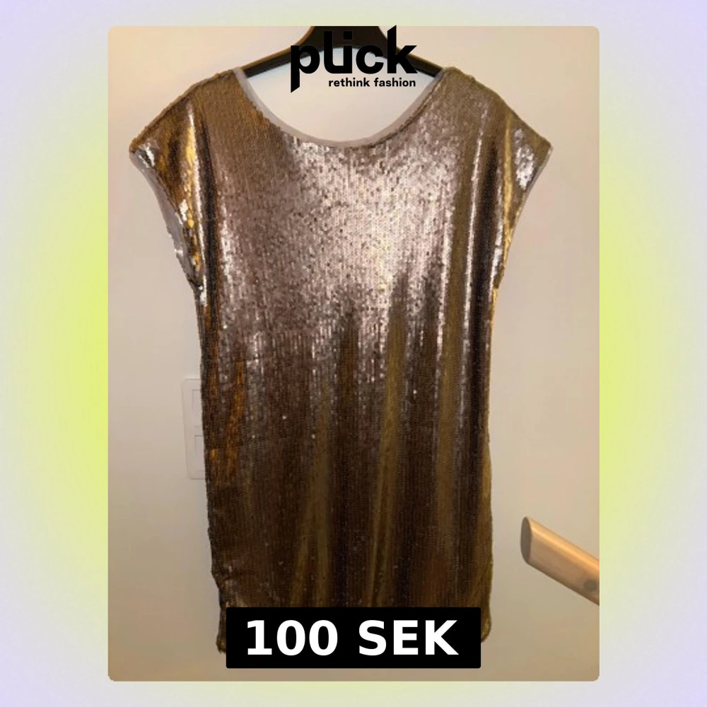 Säljer en glittrig kortklänning i silver med paljetter över hela klänningen. Den har en rak passform, rund halsringning och är ärmlös. Perfekt för dig som vill sticka ut och glänsa på nästa event!