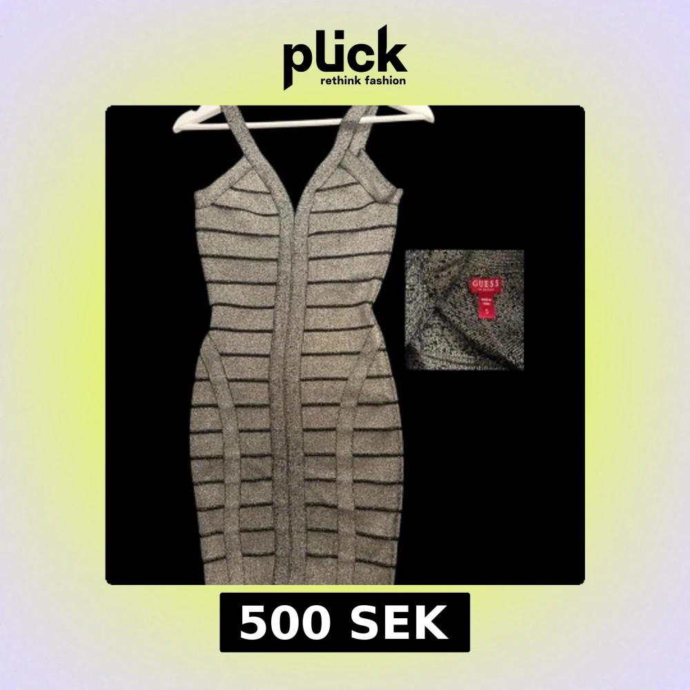 Supersnygg glittrig silverklänning från Guess med smala axelband och v-ringning. Klänningen är kort och har ett tight passform med svarta ränder som ger en cool effekt. Perfekt för dig som vill sticka ut och glänsa.