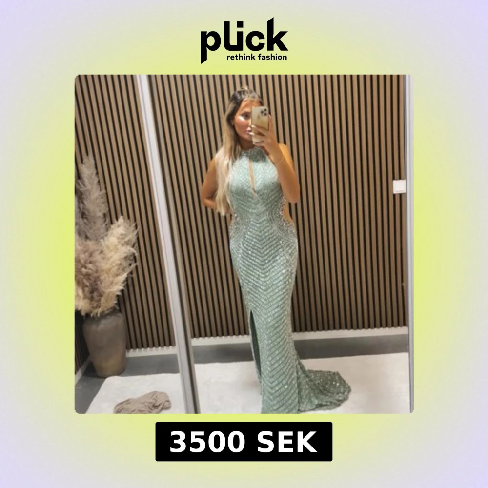 Säljer en superfin långklänning i mintgrönt med glittriga paljetter och snygg slits framtill. Klänningen har hög hals, öppna partier vid sidorna och ett elegant mönster. Perfekt för bal eller fest! Sitter figurnära och ger en lyxig känsla. Ordinarie pris 9500kr säljer den för 3500