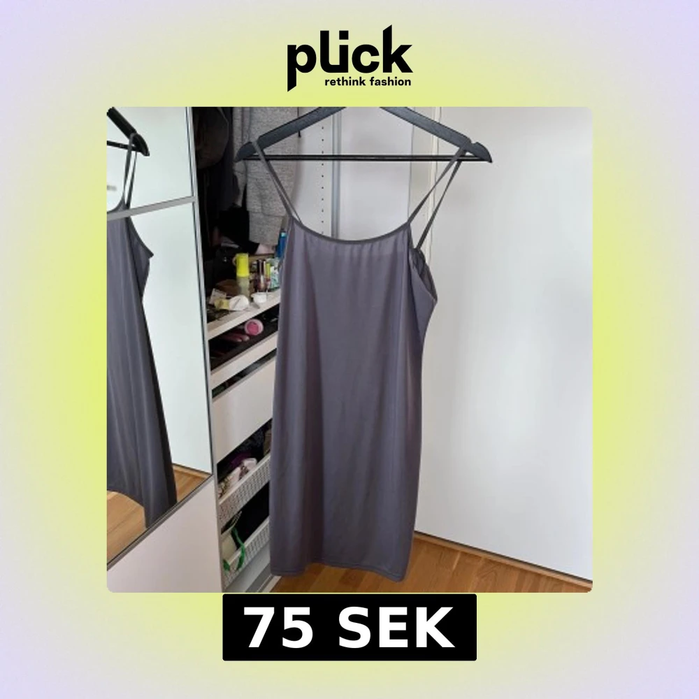 Enkel och stilren grå klänning med smala axelband och rak passform. Klänningen är ärmlös och har en mjuk, slät yta som känns skön mot huden. Köpt från shein därav billigt pris. DMa för mer info🩷