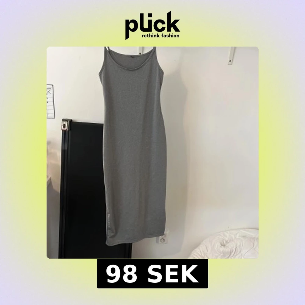 Enkel och stilren grå långklänning med smala axelband och rak passform. Klänningen är ärmlös och har en mjuk känsla, perfekt för en avslappnad look. Passar lika bra till sneakers som sandaler.