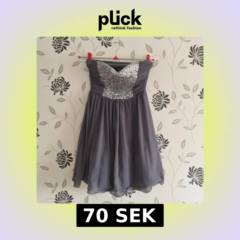 Snygg grå axelbandslös klänning från Sisters med glittrig paljettöverdel. Kjolen är luftig och faller fint. Perfekt för en festlig kväll!