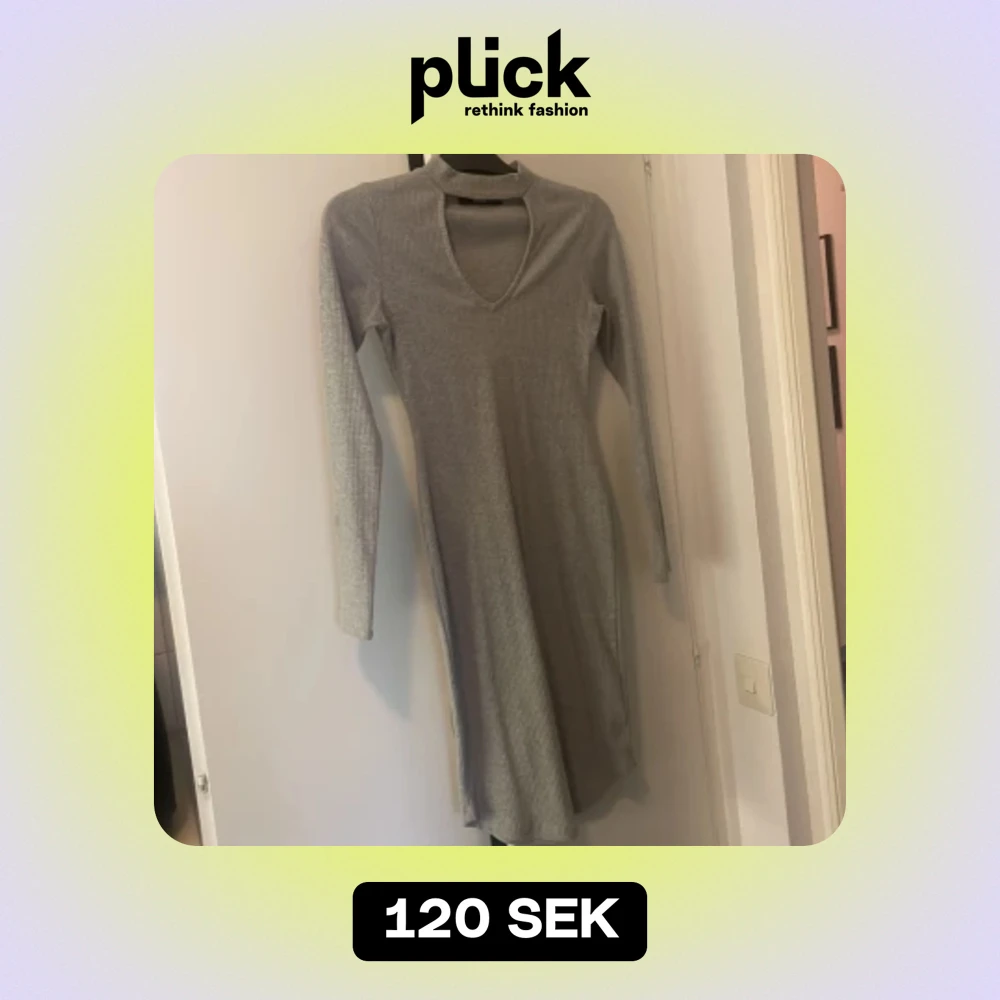 En grå jätte skön klänning med öppen hals. Den är i storlek XS men den sitter fint om man har storlek S också.