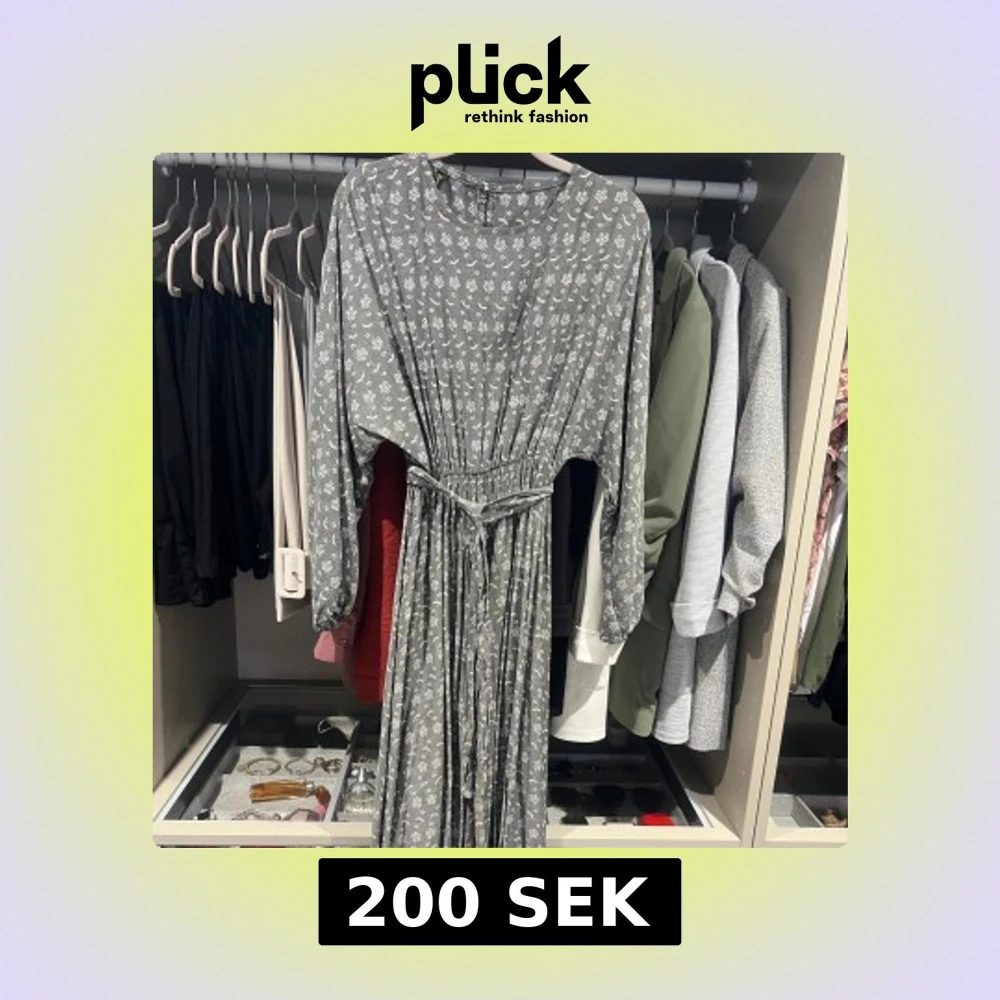 Säljer en grå långklänning med vitt blommigt mönster. Klänningen har långa ärmar, rund halsringning och ett avtagbart knytband i midjan som ger en snygg siluett. Perfekt för dig som gillar en avslappnad men ändå stilren look. Strl S/M