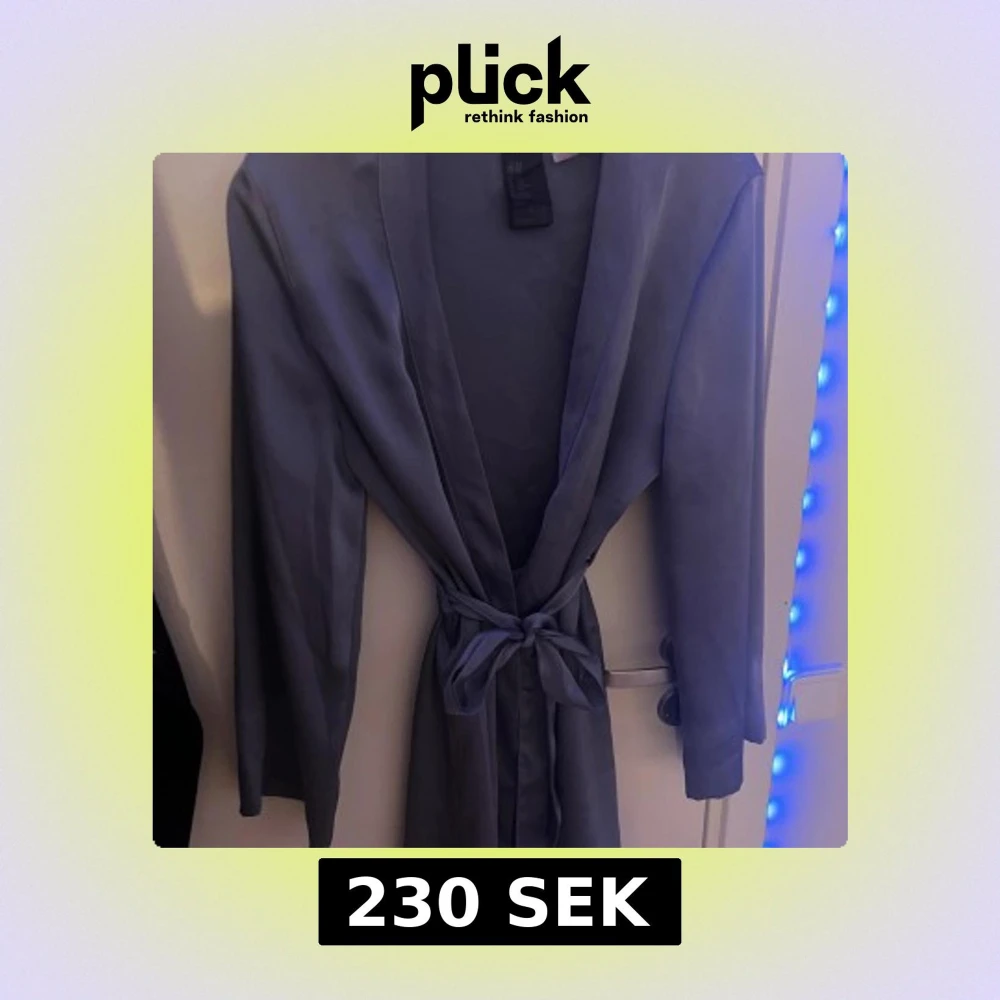 Snygg grå omlottklänning från H&M med lång ärm och knytband i midjan. Klänningen har en mjuk satinliknande yta som ger en lyxig känsla och ett elegant fall. Perfekt för dig som gillar stilrena och enkla plagg med en twist.