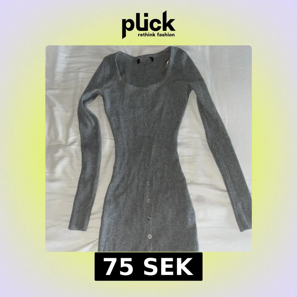 Snygg grå ribbad klänning med lång ärm och knappar framtill. Perfekt för en stilren look. Väldigt stretchig