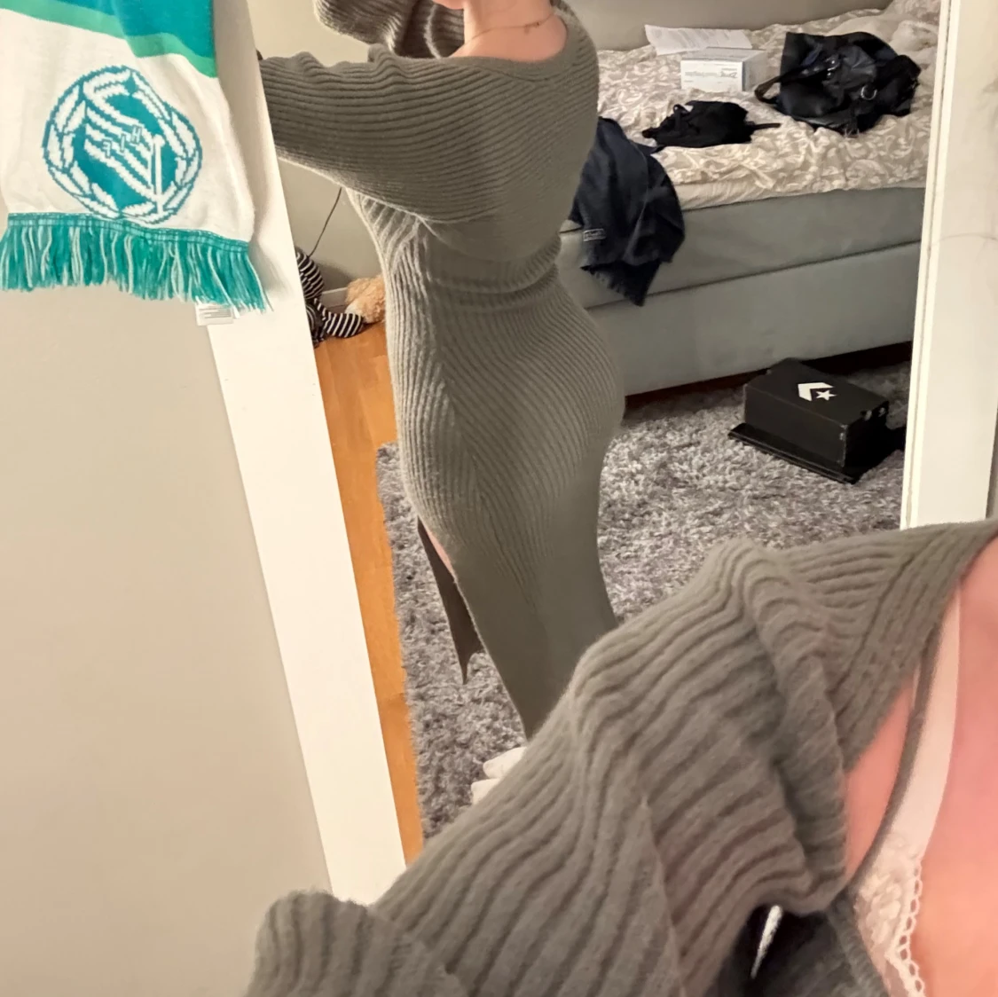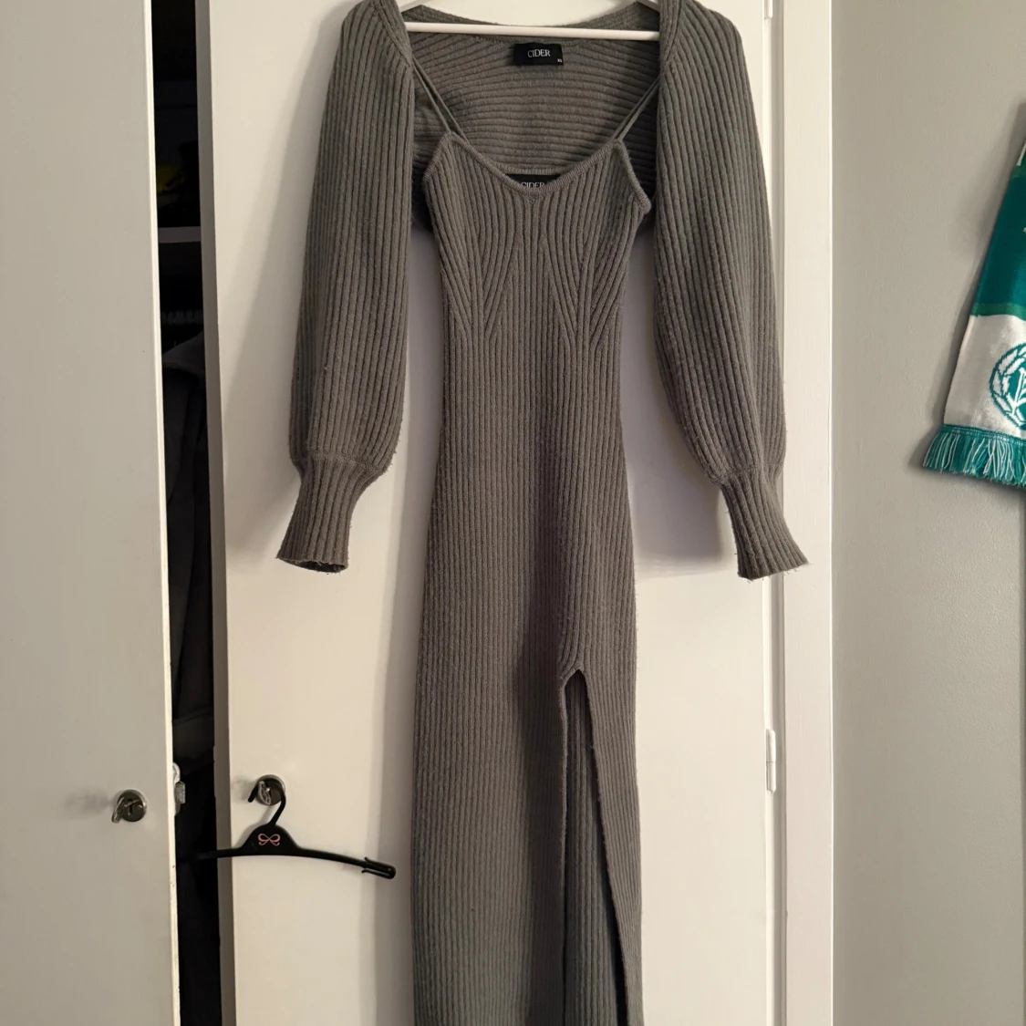 Supersnygg grå ribbstickad långklänning från Cider med smala axelband och tillhörande bolero. Klänningen har en figurnära passform och en slits på sidan. Storlek XS men passar mig som vanligtvis är en S. Använd fåtal gånger !! Priset är diskuterbart vid snabb affär🩷🩷 skriv privat vid fler frågor🩷 Det är mina egna bilder